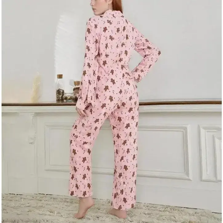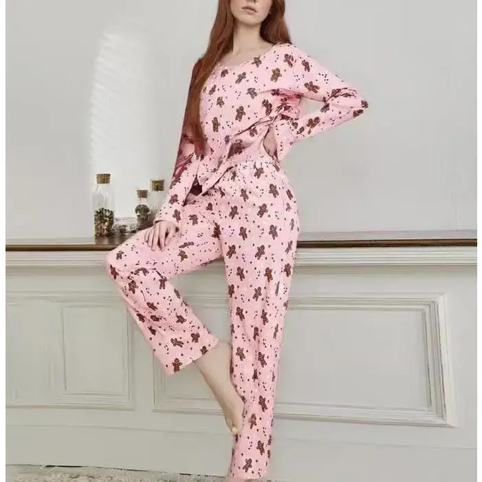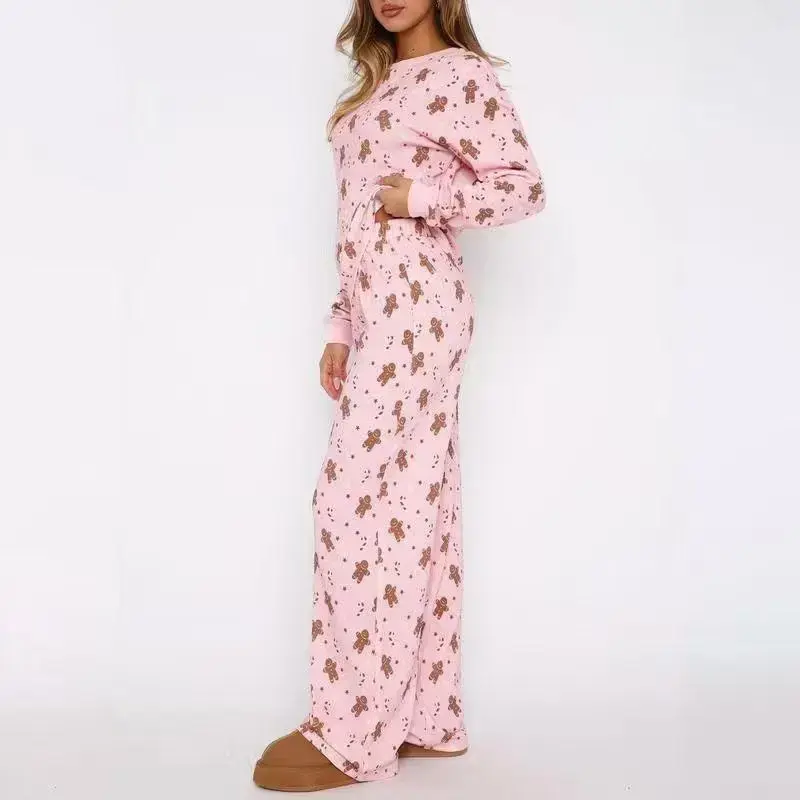 Women's Christmas Casual Set Gingerbread Print Long-Sleeve Top and Stretch Pants Two-Piece Pajamas