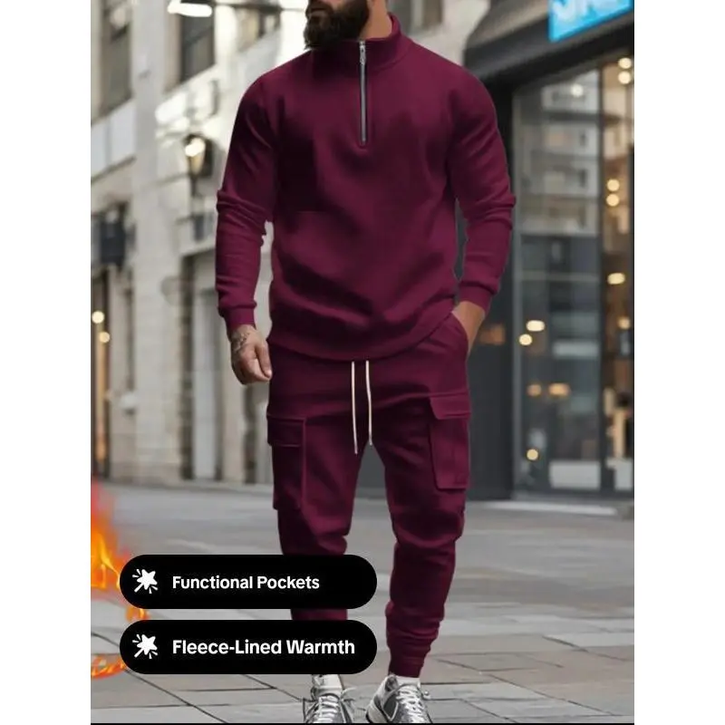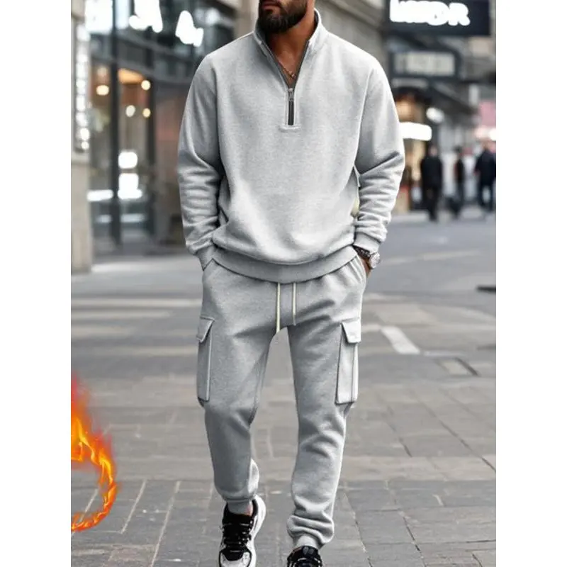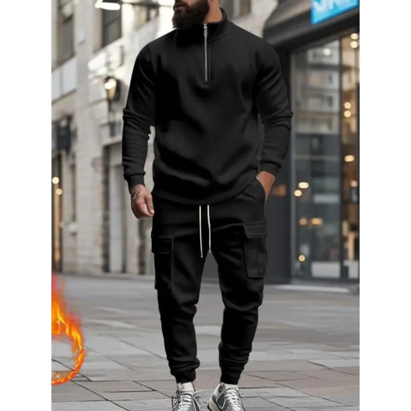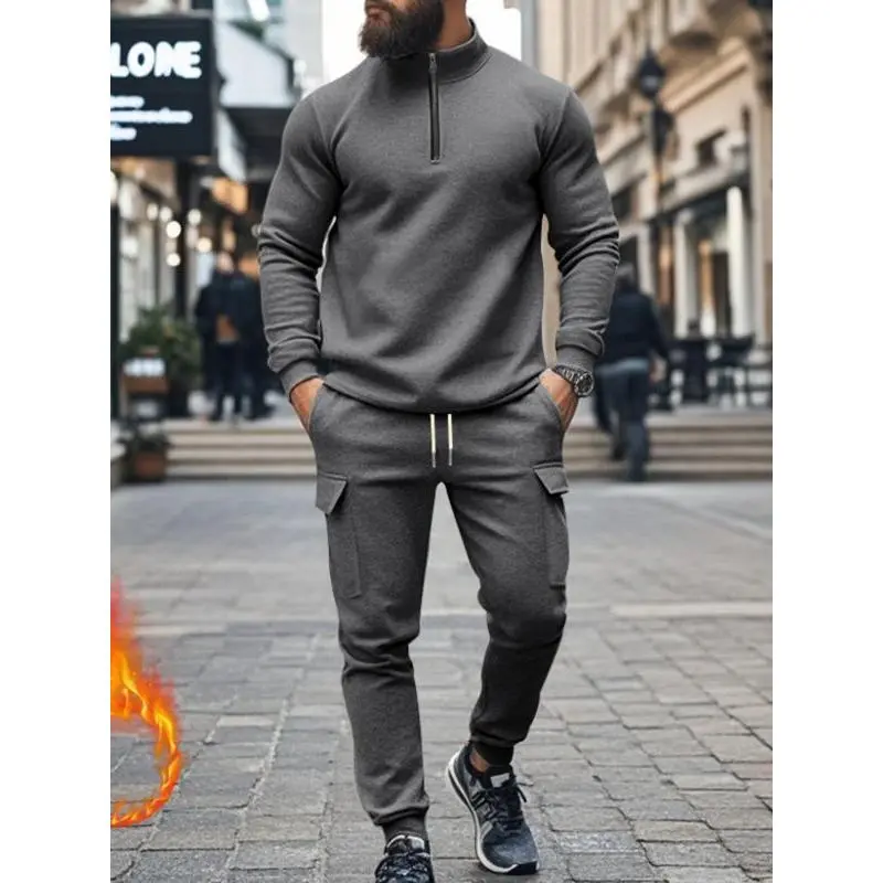 Men's Winter Casual Fleece Lined Zipper Work Pants Set, Soft Fabric Warm Long Trousers for Fall & Winter, Comfortable Daily Wear(gift)