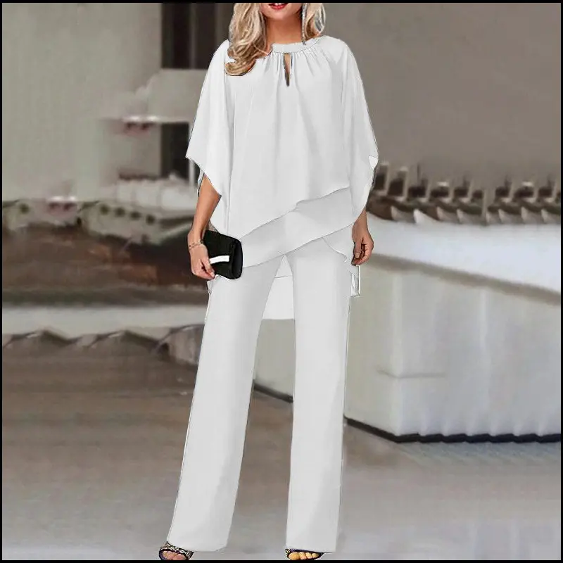 Mother of Bride Pant Suits Plus Size Half Sleeve 2 Piece Chiffon Pantsuit Formal Wedding Guest Outfit Womenswear Clothes