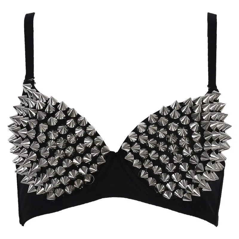 Rivet Bra Lingerie Punk Bar Stage Costume DS Belly Dance Performance Outfit Rhinestone Sparkling Beads Womenswear Basic
