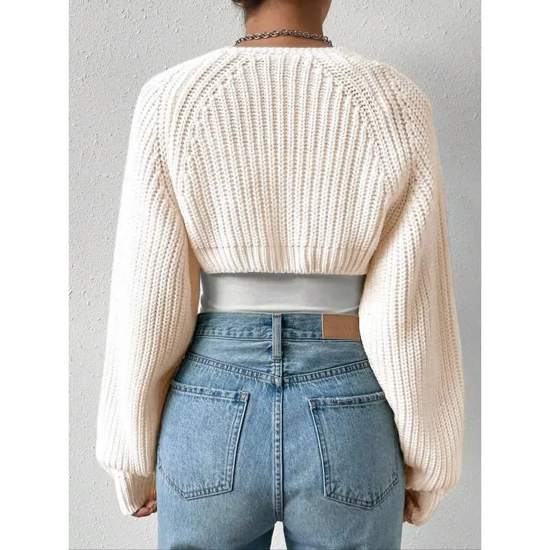 Wo's Solid Long Sleeve Open Front Crop Cardigan, Casual Solid Knit Cover Up for Daily Wear Holiday Vacation, Ladies Outerwear Clothes for All Seasons