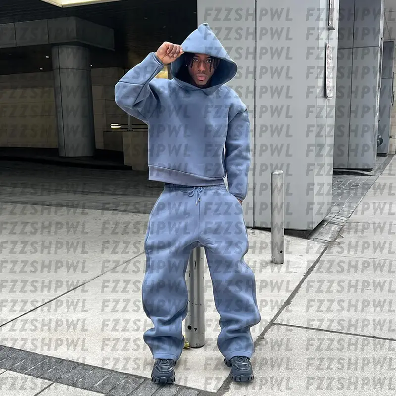 Y2kAmericanWinterOversizedHoodiesSweatpantsSuitsMen'sVintageHipHopCasualElasticityPulloverFashionPunk2PieceSetClothesMenswear