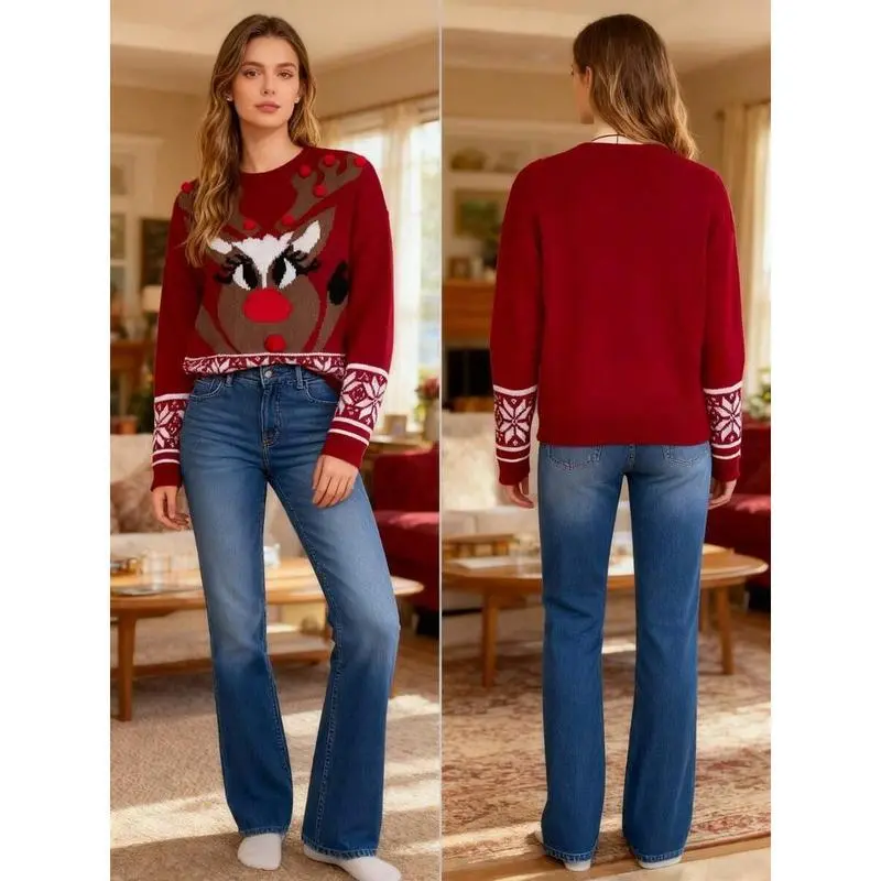 ?? Women's Christmas Reindeer Sweater ?? Maxed-Out Funny & Eye-Catching Vibe Playful Details Full of Fun Strong Comfort & Practicality