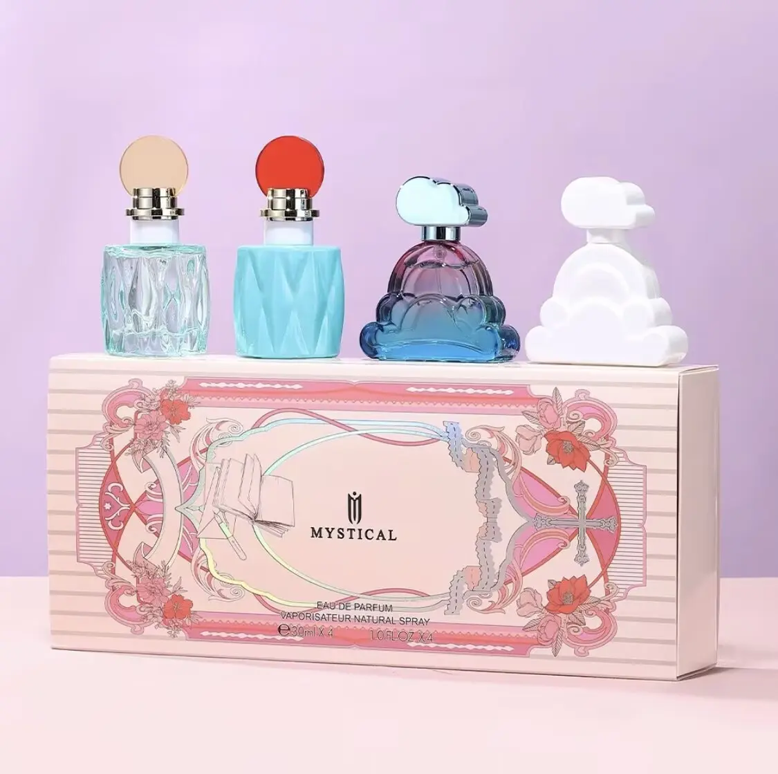 Discover the perfect blend of floral and fruity scents in this elegant perfume set. Each bottle contains 30ml of Eau De Toilette, ideal for women seeking a fresh fragrance. Packaged as a Christmas or winter gift, it's a thoughtful present for loved ones. The set includes four bottles, ensuring ample supply for daily use or sharing.