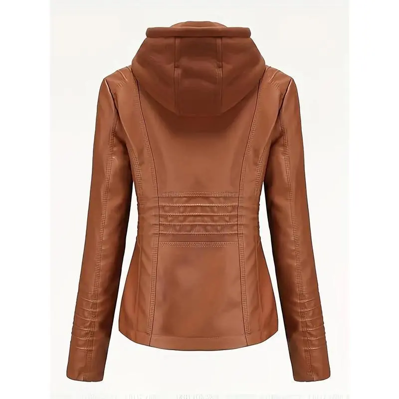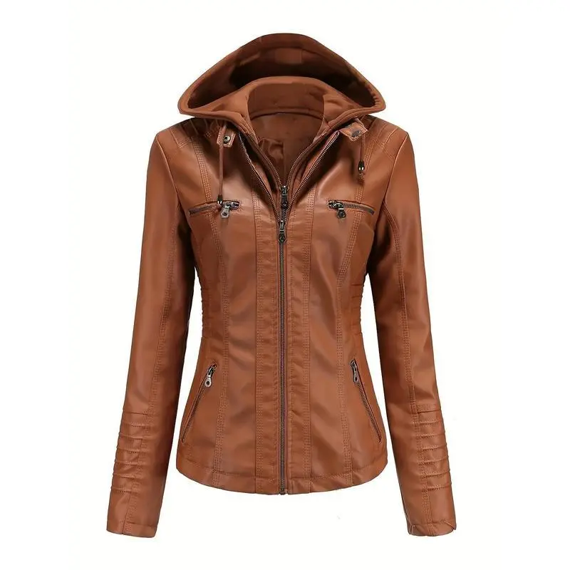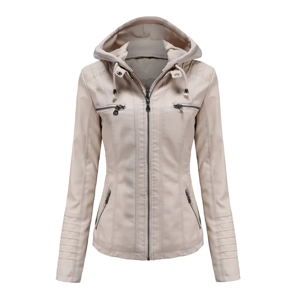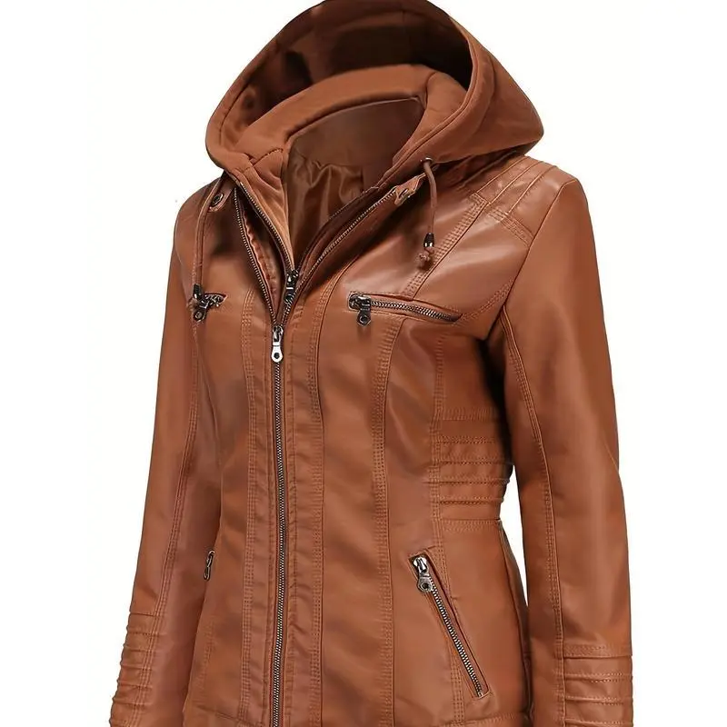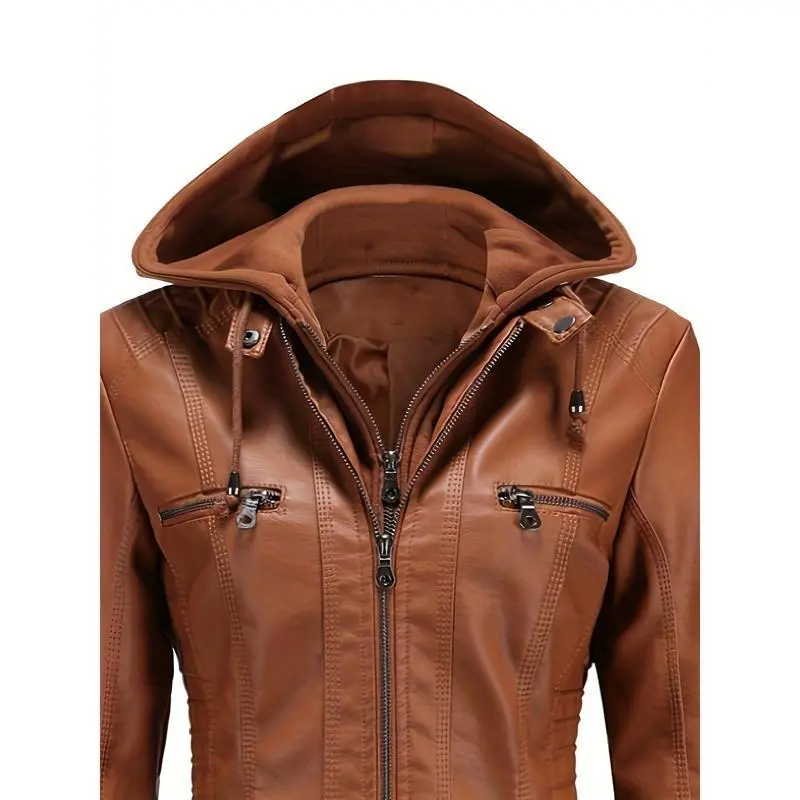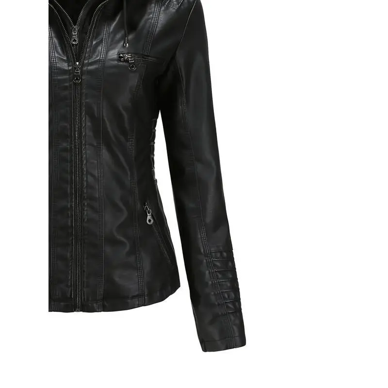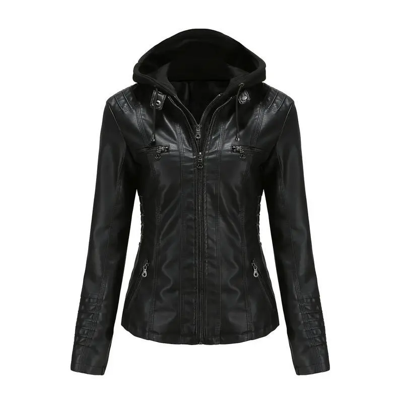 Women's Motorcycle Jacket with Detachable Hood, Biker Style Outerwear for Riders