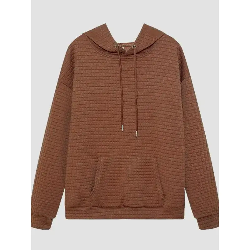 Women's Plain Textured Drawstring Drop Shoulder Hoodie, Casual Pocket Long Sleeve Hooded Sweatshirt For Fall & Winter, Women's Clothes For Daily WearGift