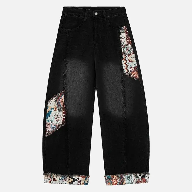 Patchwork Baggy Jeans Super Baggy Barrel Jeans Y2k Vintage Fabric Patchwork Jeans Unisex Straight Leg Wide Leg Trousers Mid-low Rise Baggy Jeans Unisex Stretchy Wide Leg Distressed Pants