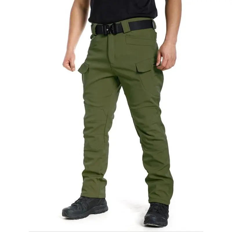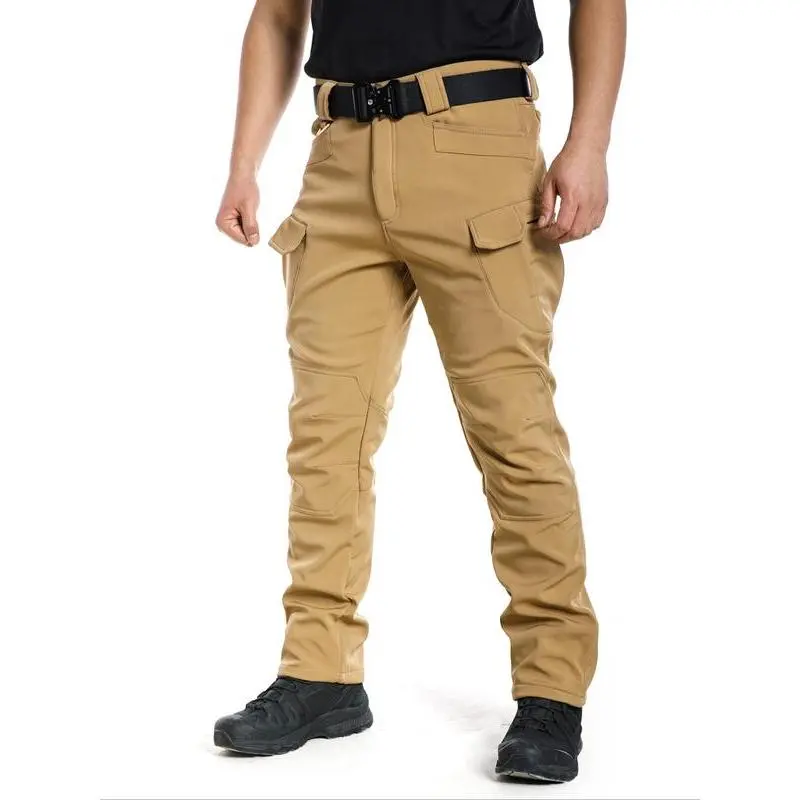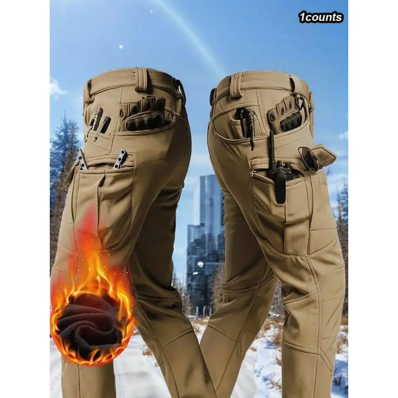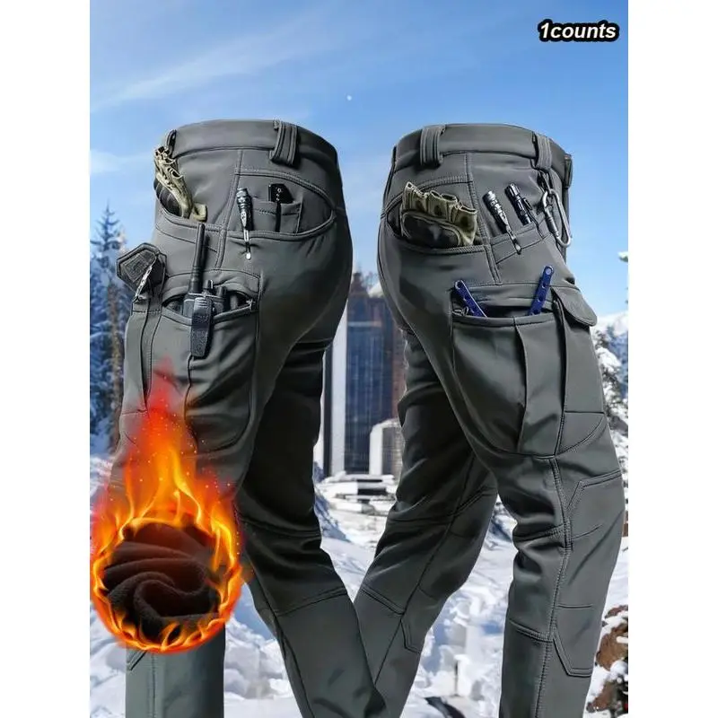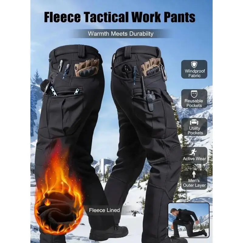Men's Fall Winter Fleece Tactical Work Pants, Zipper Pockets, Warm and Windproof, Reinforced Pocket Design, Outdoor Hiking Trekking Training Fishing