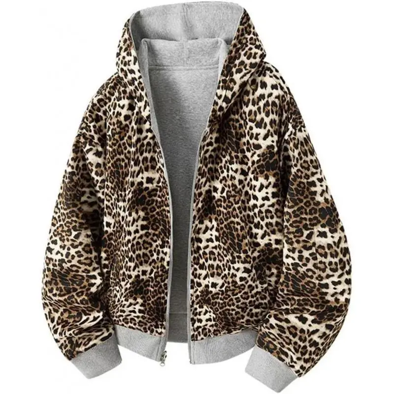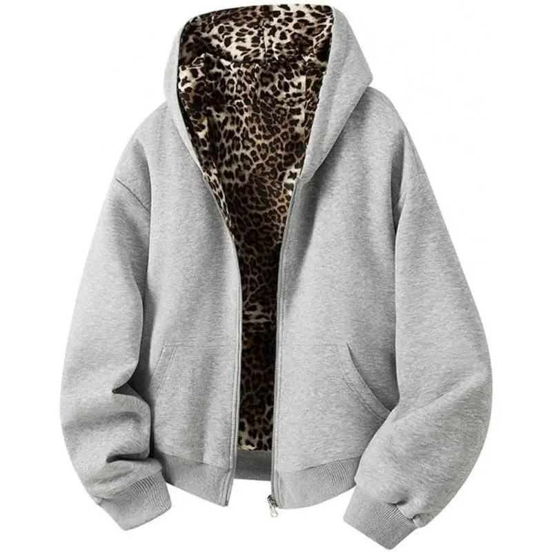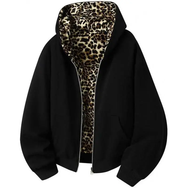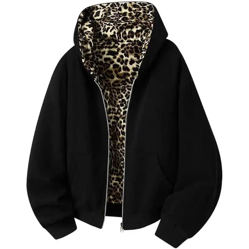 Men'S Print DoubLe-Sided Wear HoodieS Hooded Lager PocketS Zipper ReverSibLe ContraSt CoLor MaLe Jacket, Leopard Print Lined Hoodie, Men's Zip Front Leopard Lined Hoodie, Men's Oversized Leopard Lined Sweatshirt