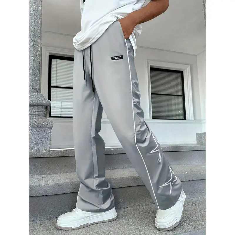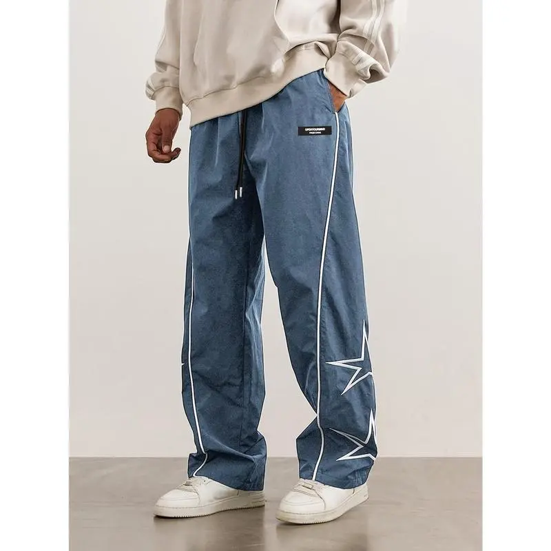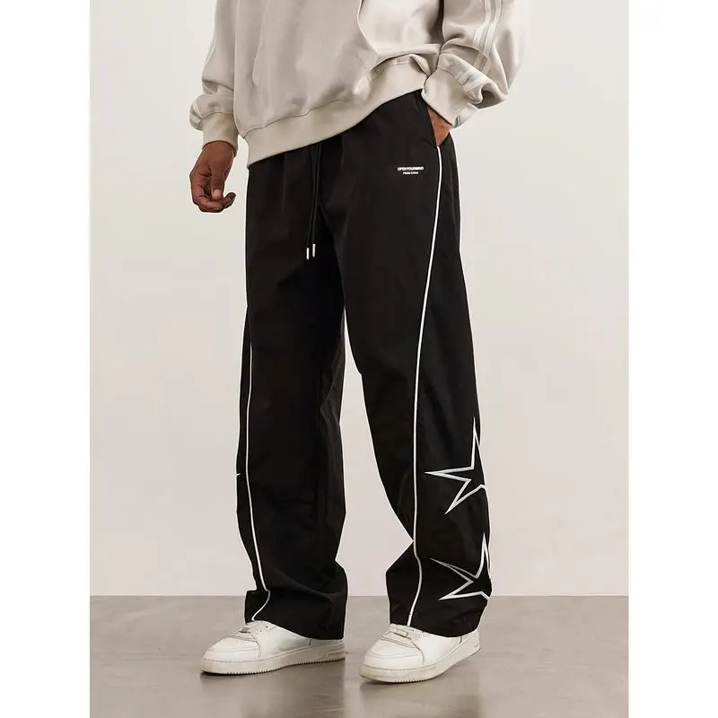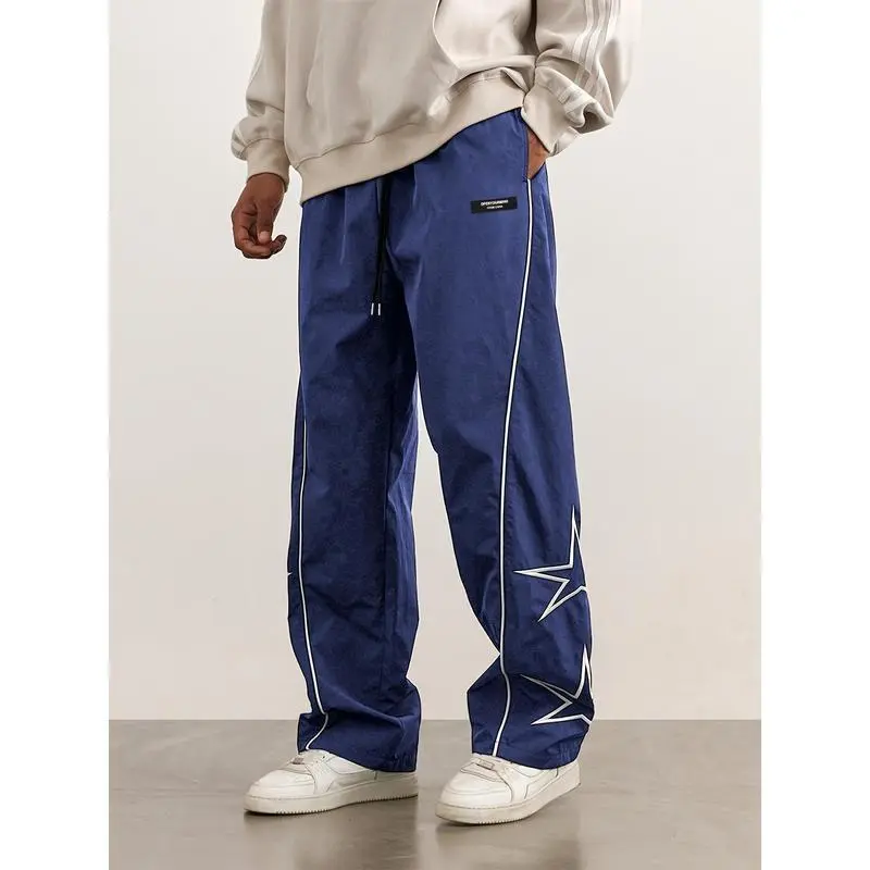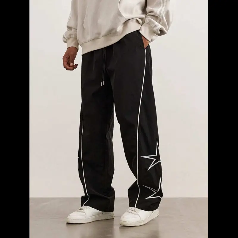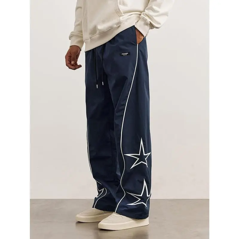2025 Men's Loose Fit Wide Leg Drawstring Pants, Star Pattern Embroidery, Men's Stylish Comfy Pants Casual Menswear sweatpants men Cargo Polyester