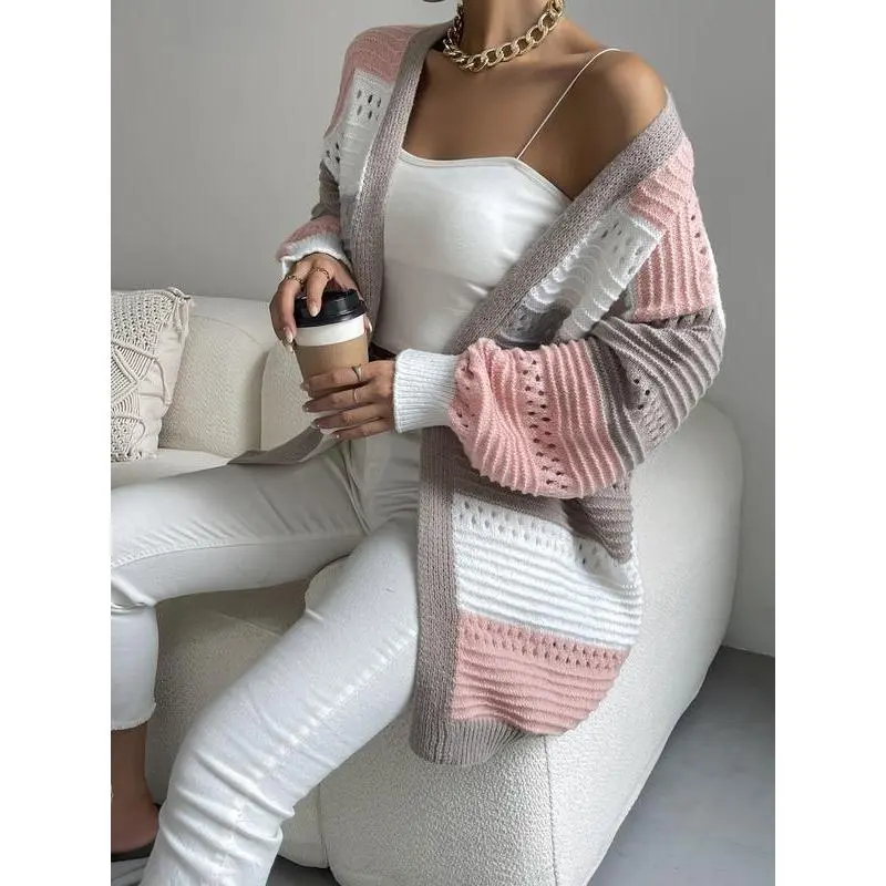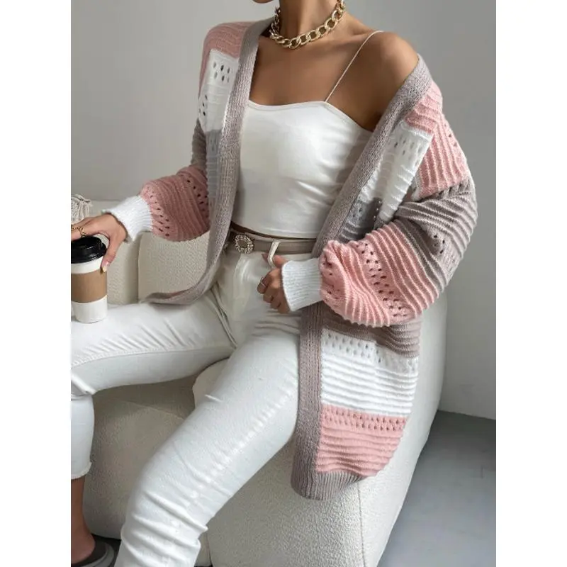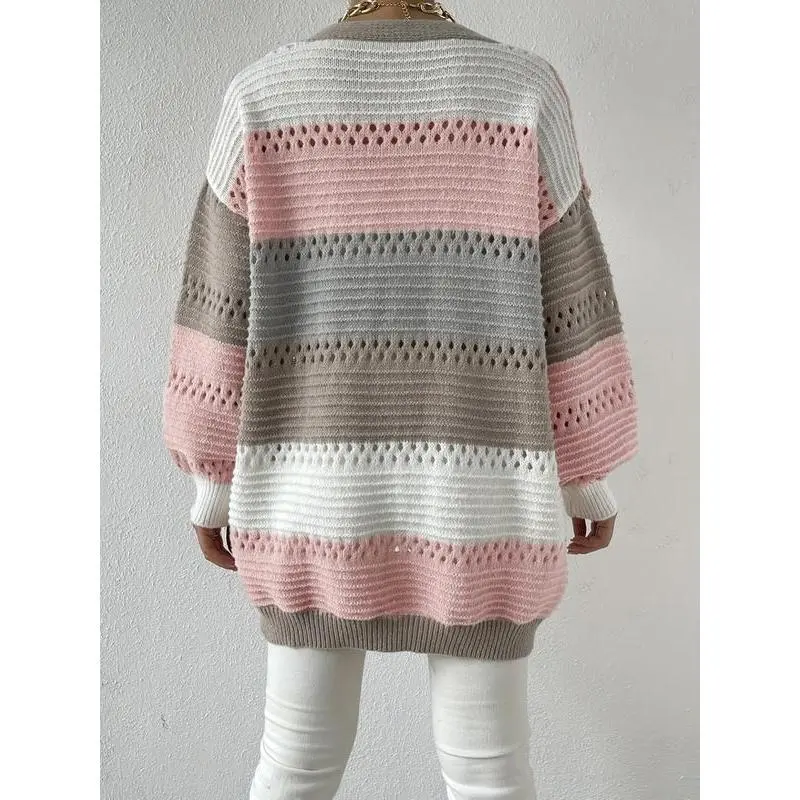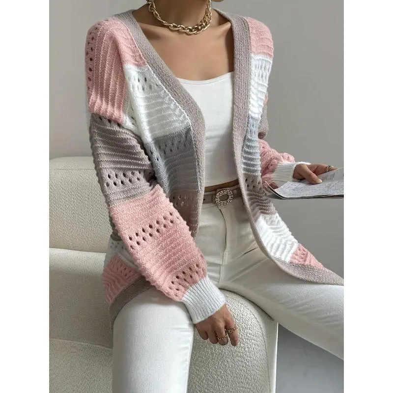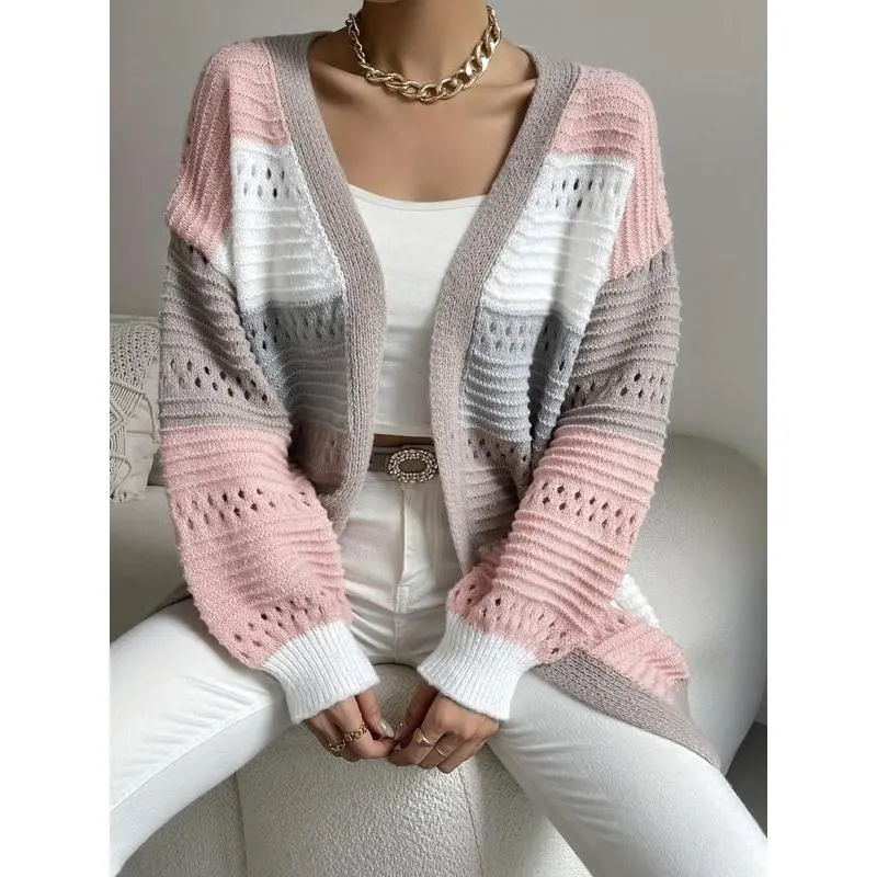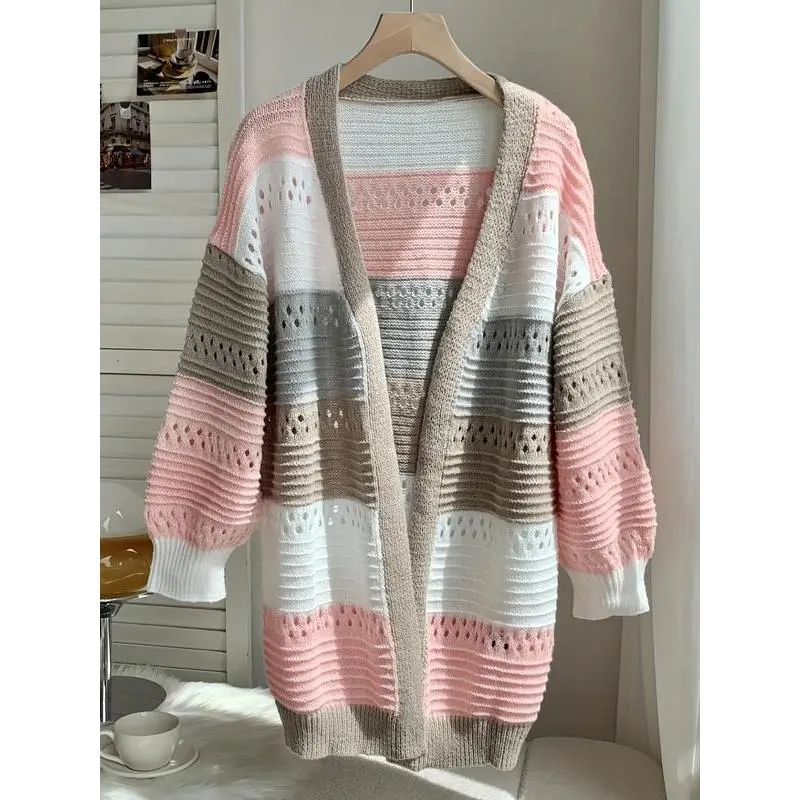 A set of women's multi-color striped knitted sweaters and cardigans, suitable for autumn and winter, suitable for home, indoor, and outdoor wear
