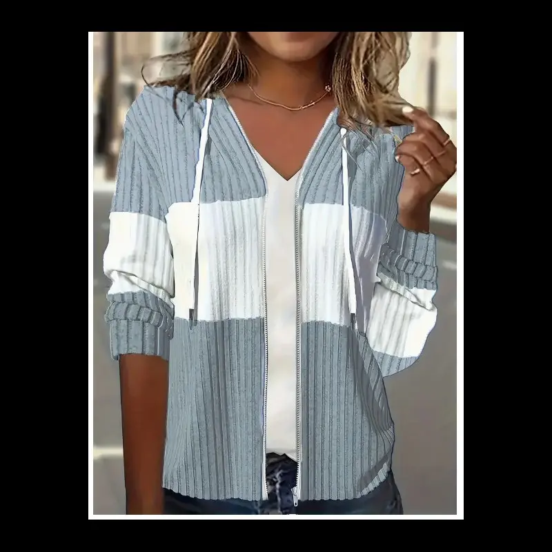 ?? Color Block Zip Up Drawstring Hoodie ?? This casual long sleeve rib knit sweatshirt is perfect for women. Made from 100% polyester, it features a color block design with a solid color pattern. The hoodie is not sheer and suitable for spring, summer, and fall. It offers mid elasticity and no printing. The knit fabric ensures comfort. Machine wash or professional dry clean for care. Product Details ?? Care Instructions ?? For best results, machine wash or opt for professional dry cleaning. This ensures the hoodie maintains its shape and color. The knit fabric requires gentle care to preserve its quality.