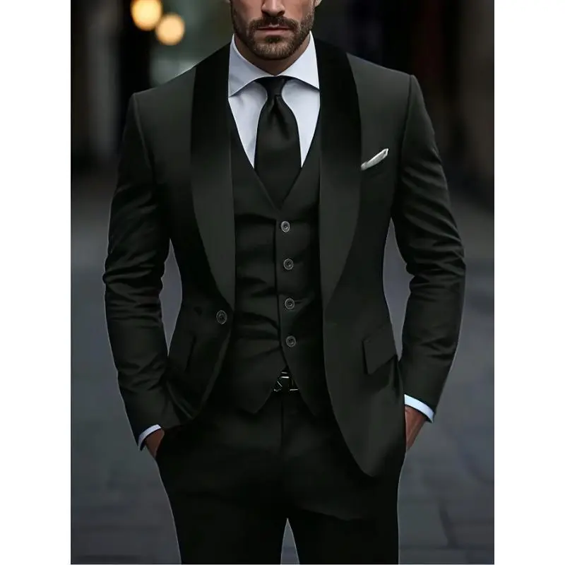 [Lightweight Design] Men's 3pcs Formal Suit Set - Solid Color, Includes Lapel Blazer, Vest, and Dress Pants - Ideal for Business Events, Graduations, Weddings, and Parties