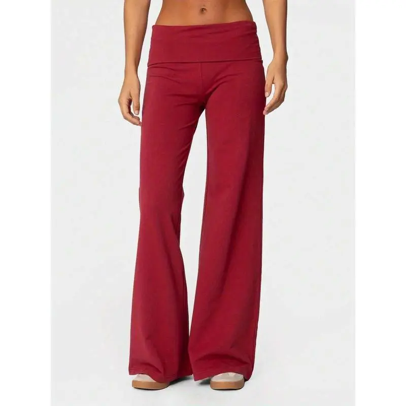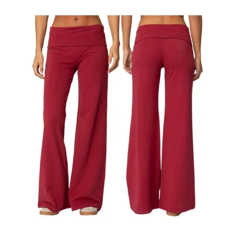 Women Y2k Palazzo Yoga Pants Fold Over Flare Leggings Low Rise Solid Color Stretch Casual Wide Leg Pants Comfy Lounge Pants Bootcut Bell Bottoms Baggy Sweatpants Streetwear hoodie comfort Women's Slub Knit Full-Zip