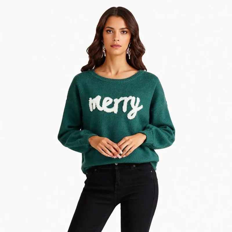 This sweater features a charming "merry" letter print, perfect for festive occasions. The design adds a festive touch to your outfit, making it ideal for Christmas and holiday gatherings. ?? Festive and Casual Material and Season