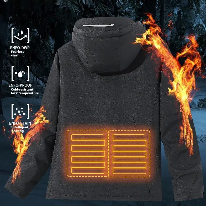 Autumn Winter Men Women Smart Heating Jacket USB Carbon Fiber Heating Travel Coat Winter Men Women Heating Cotton Jacket