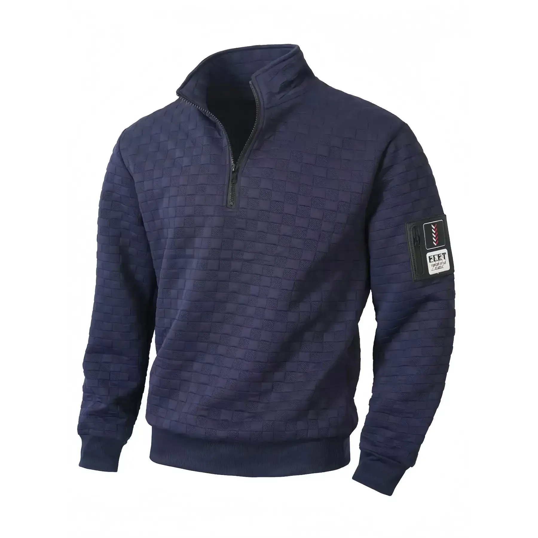 Tactical fleece jacket for men, warm stand-up collar, quarter zipper pullover, Waffle check sweatshirt, sportswear, long-sleeved, slim fit, individual patch, suitable for daily wear and outdoor sports, or him boyfriend christma, Lightweight fleece jacket