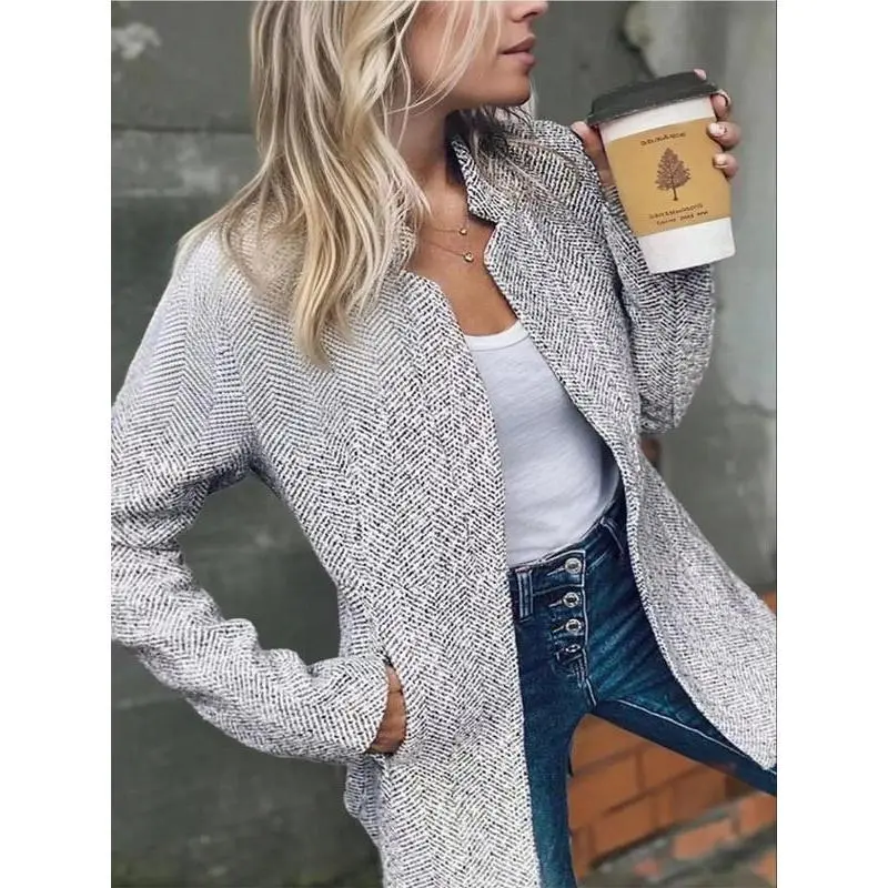 Women's Solid Color Pocket Long Sleeve Open Front Coat, Casual Fit Longline Outerwear for Fall & Winter, 2025 Jackets for Women, Ladies Fitted Clothes for Daily Wear, Everyday Clothes for Women, Tops, Womenswear, Workwear Uniforms Multicolor(gift) Smooth