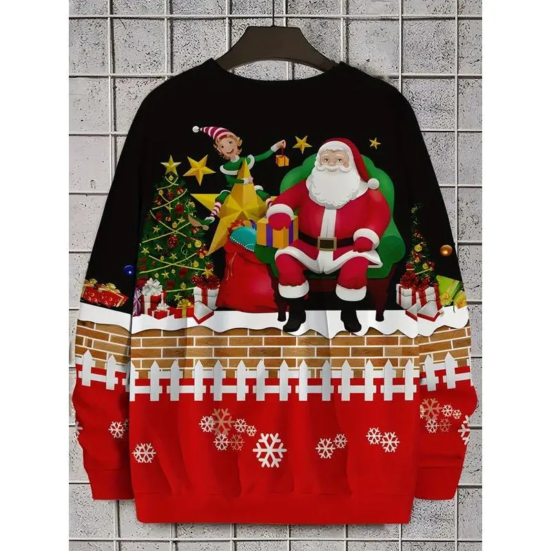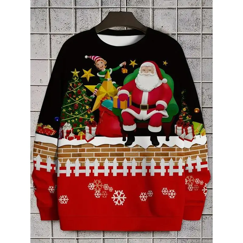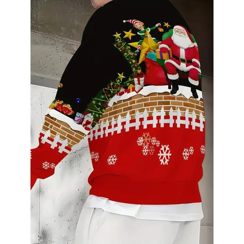Fun Santa Claus printed fashion sport sweater, men's casual crewneck pullover hoodie, ugly Christmas sweater, women's top
