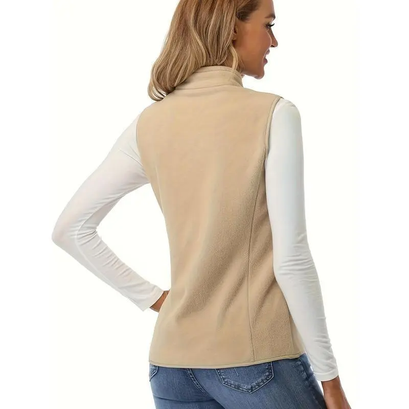 Women's Fleece Vest Jacket Sleeveless Lightweight Zipper Jacket Warm Soft Vest with Zipper Pocket