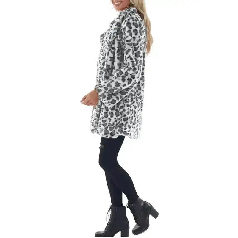 Women Winter Warm Faux Fur Coat Fashion Casual Turn-down Collar Leopard Jackets Ladies Streetwear Long Sleeve Pockets Overcoats