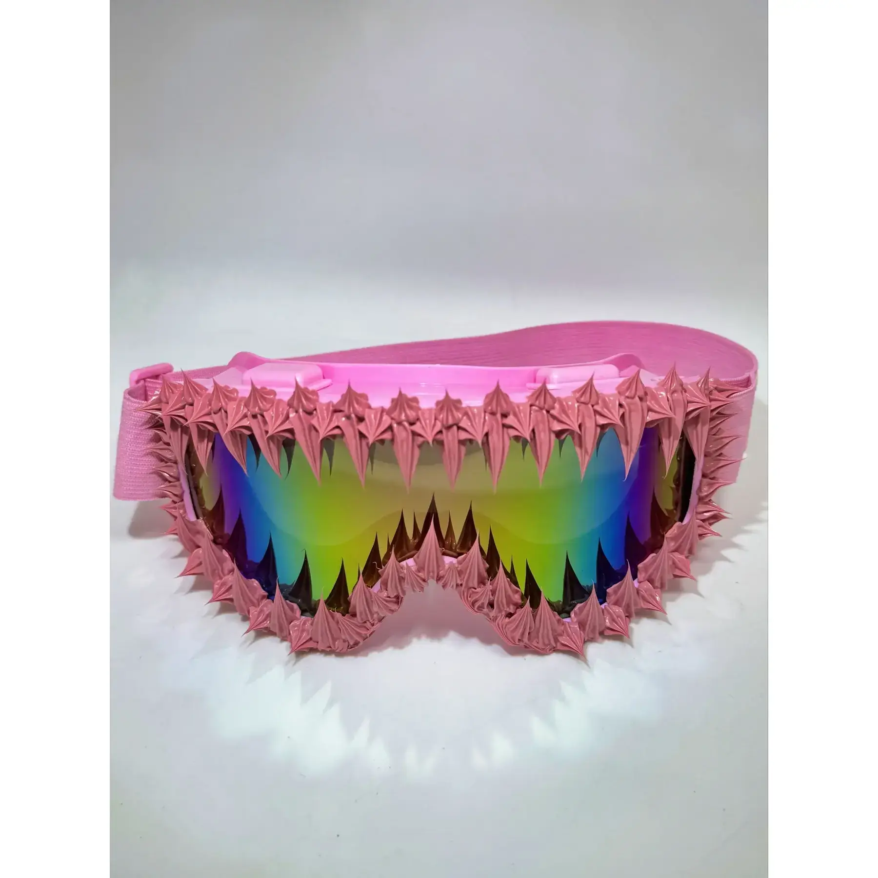 【Unique Variations】: Each pair showcases random effects due to handcrafted production, ensuring no two pieces are identical. 【Asymmetrical Frame】: The asymmetrical frame adds a distinct, edgy look that sets these goggles apart from typical designs. 【Breathable Fabric】: Constructed from eco-friendly PC material, offering lightweight protection while being suitable for all seasons. 【Versatile Usage】: Can be used for multiple outdoor activities, including skiing, motorcycling, and as a protective face mask. 【Adjustable Fit】: Equipped with an adjustable strap, allowing for a customized fit to enhance usability during wear.