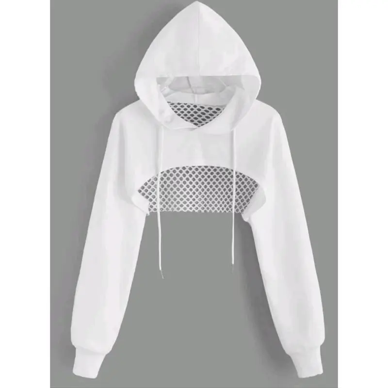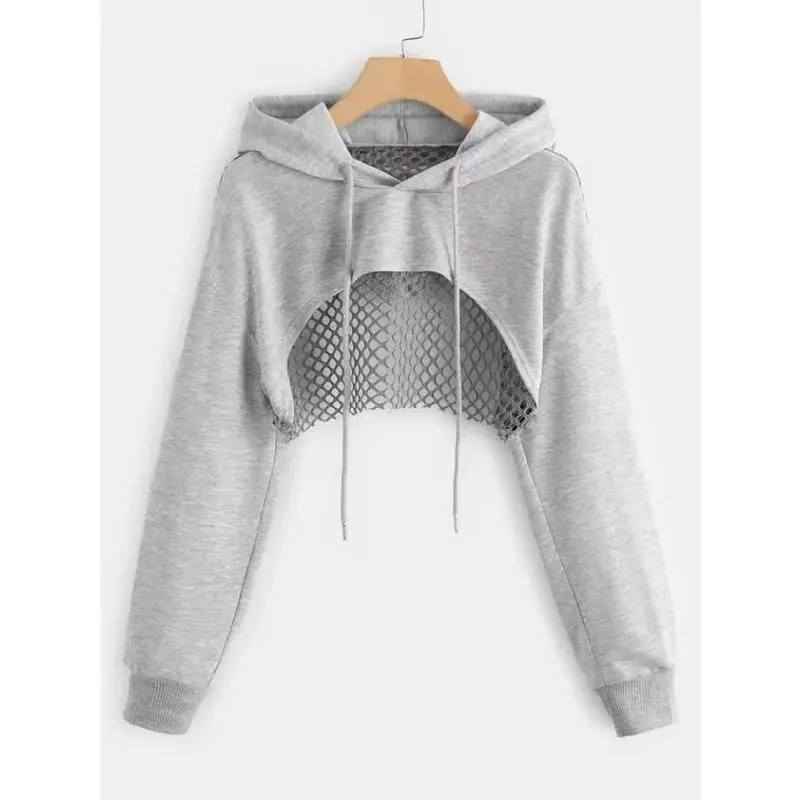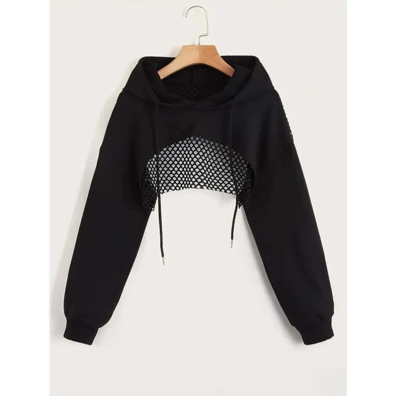 Street Sport Drop Shoulder Drawstring Hollow Out Super Crop Sports Hoodie Without Cami Top