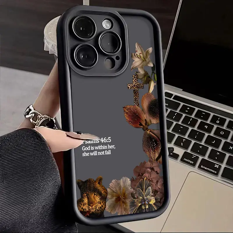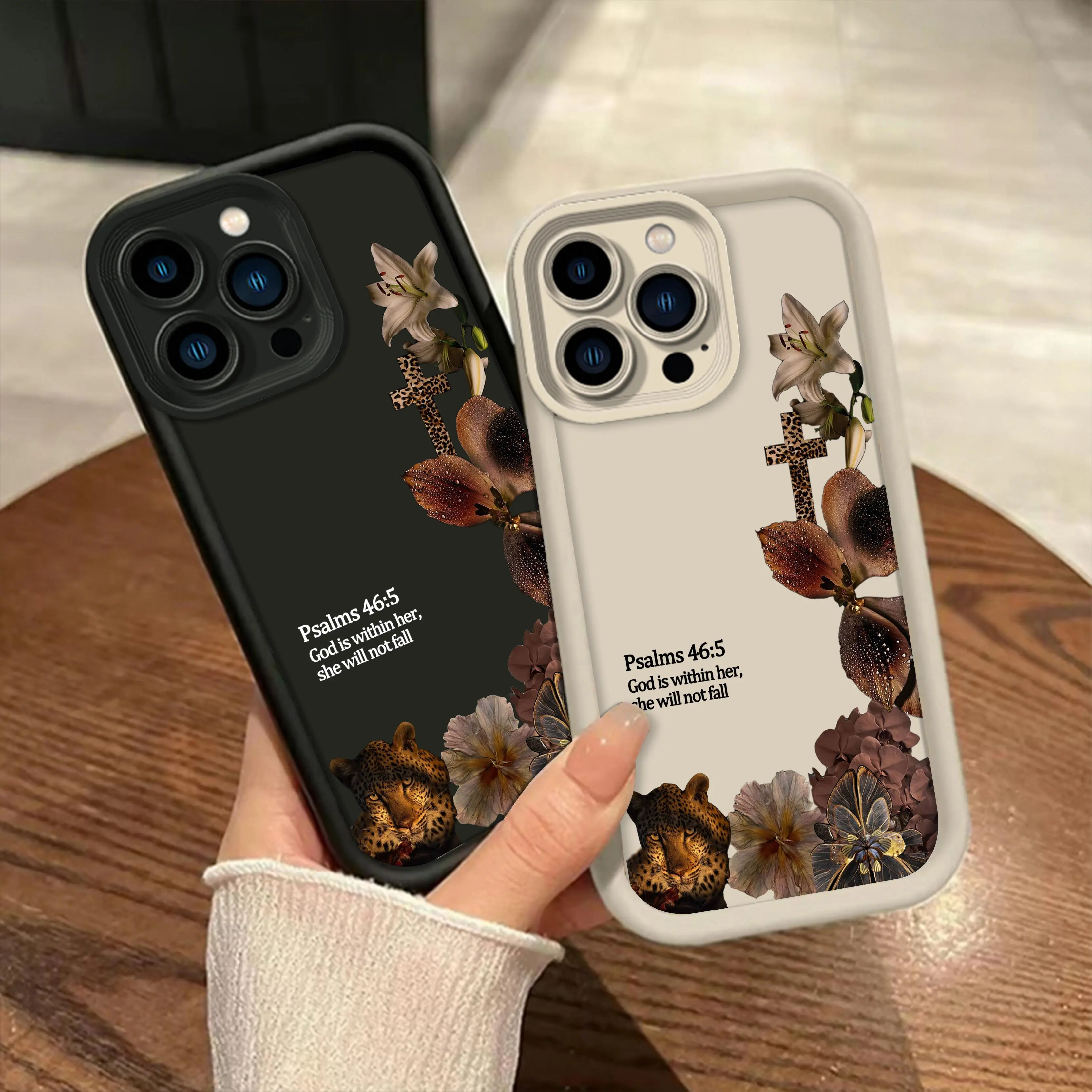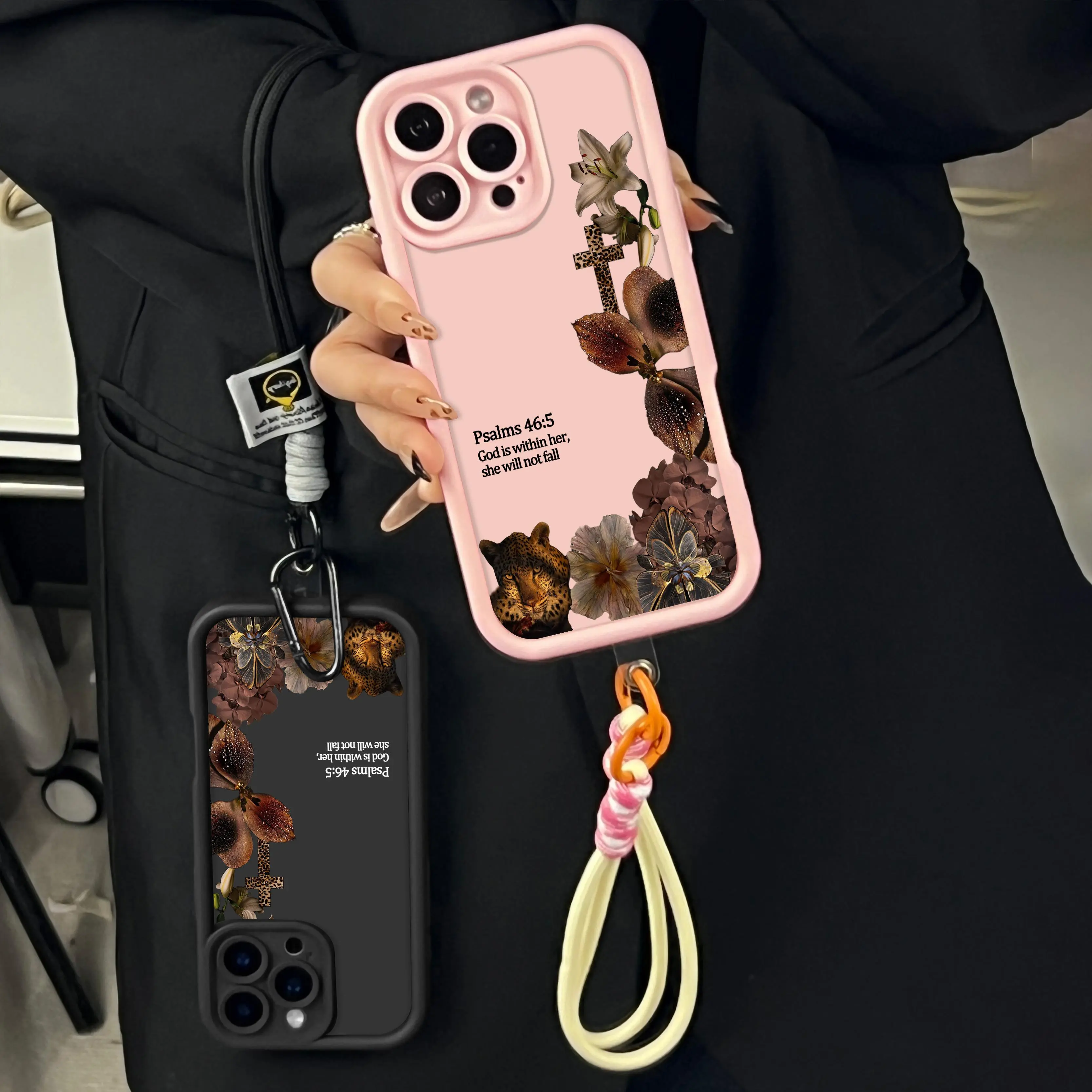 Aesthetic Leopard Print Bible Verse Phone Case for iPhone 17 Pro Max Air 16 15 Plus 14 13 12 11 with Wrist Strap Lanyard Psalms 46 5 Christian Religious Faith Gift Shockproof Protective Case