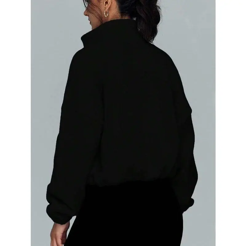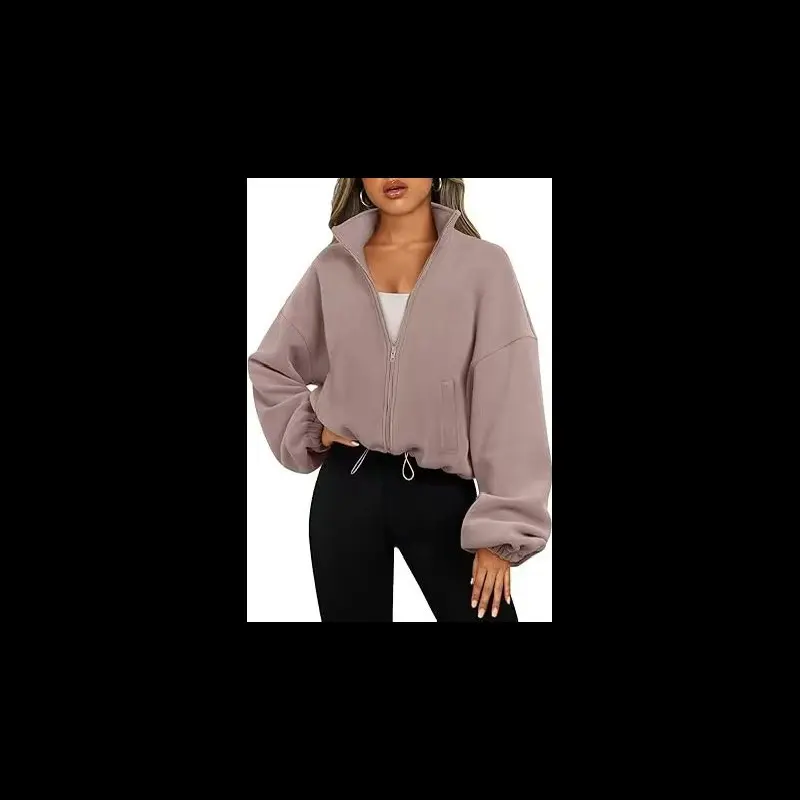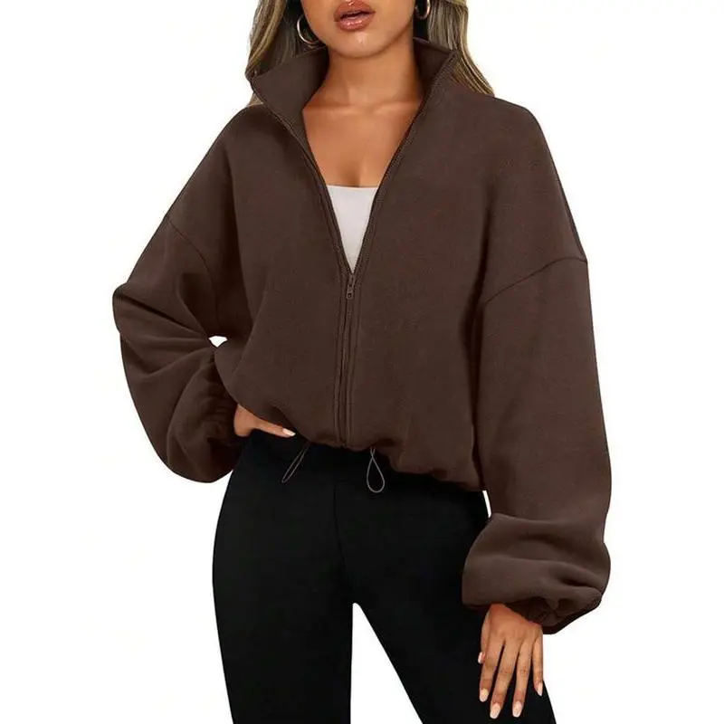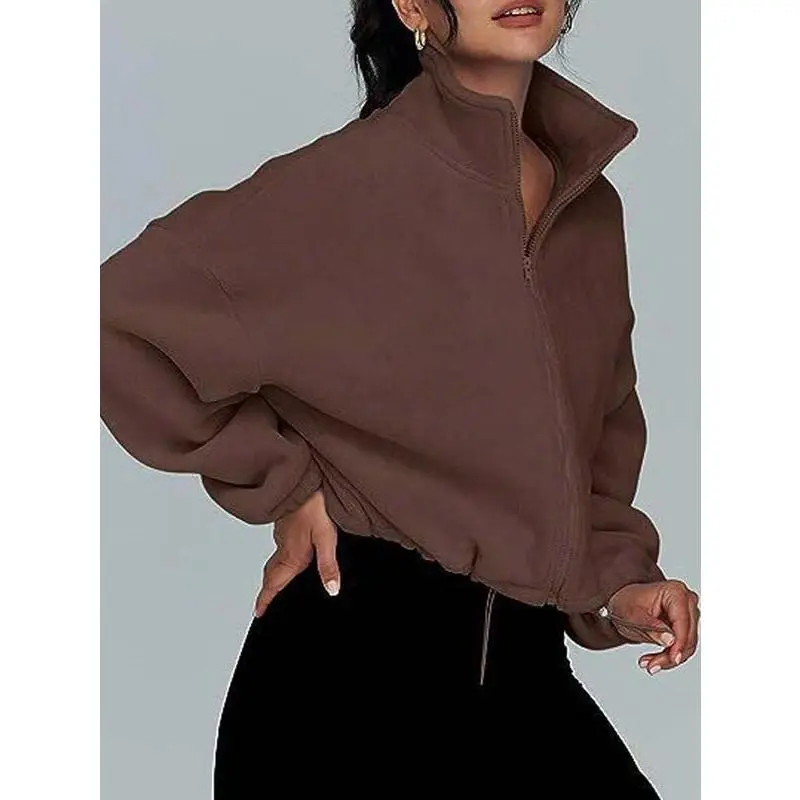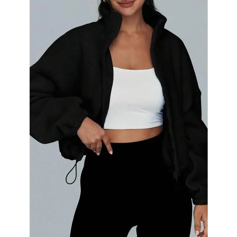 Women's Spring Fleece Crop Jacket With Zipper And Drawstring