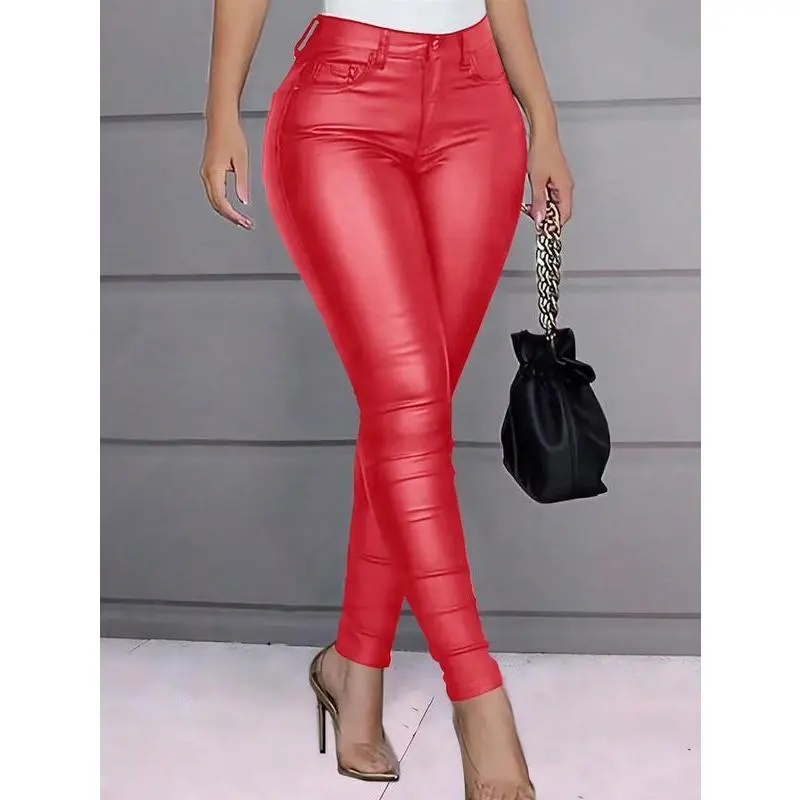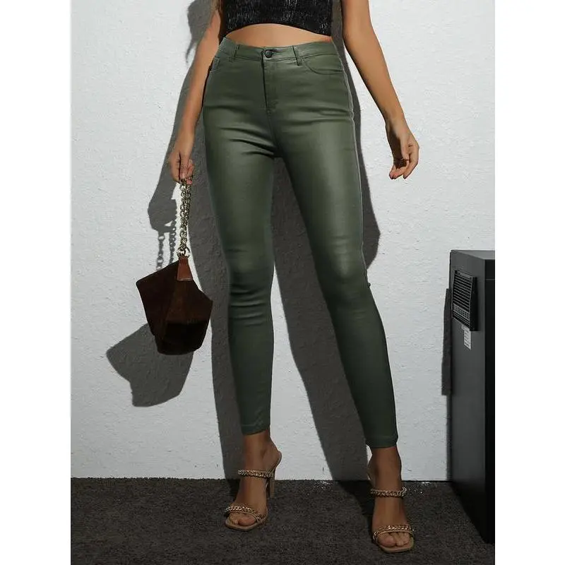 Color: Black Style: Party Pattern Type: Plain Type: Skinny Closure Type: Zipper Fly Details: Button, Pocket, Zipper Waist Line: High Waist Length: Cropped Fit Type: Skinny Fabric: High Stretch Coating: 100% Polyurethane Material: PU Leather Composition: 77% Polyester, 20% Polyamide, 3% Elastane Care Instructions: Machine wash, do not dry clean Temperature: Spring/Fall (18-25??/63-77?H) Sheer: No Product Measurements in cm : SizeUSHip Size Inseam Length Waist Size XS2757297.560-68S47972.59863-71M6837398.566-74L8/108773.59971-79XL12917499.576-84XXL149574.510081-89