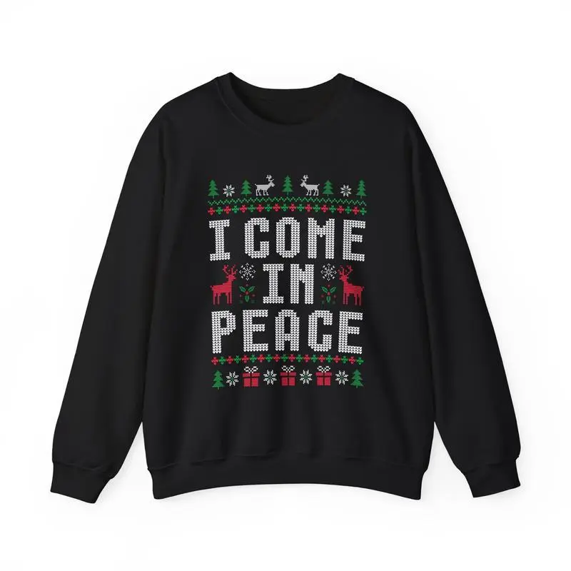 Viral Christmas Sweatshirt Duo Make holiday magic (and memes) with this viral-ready Christmas sweatshirt duo: ??I Come In Peace?? and ??PEACE.?? These hilarious designs are perfect for couples, besties, or any dynamic duo looking to turn heads at the next ugly sweater party. Each design is sold separately??you must add both ??I Come In Peace?? and ??PEACE?? to your cart if you want the matching pair. See photos for how the set looks when worn together! What Makes These Sweatshirts Go Viral: Important Note: