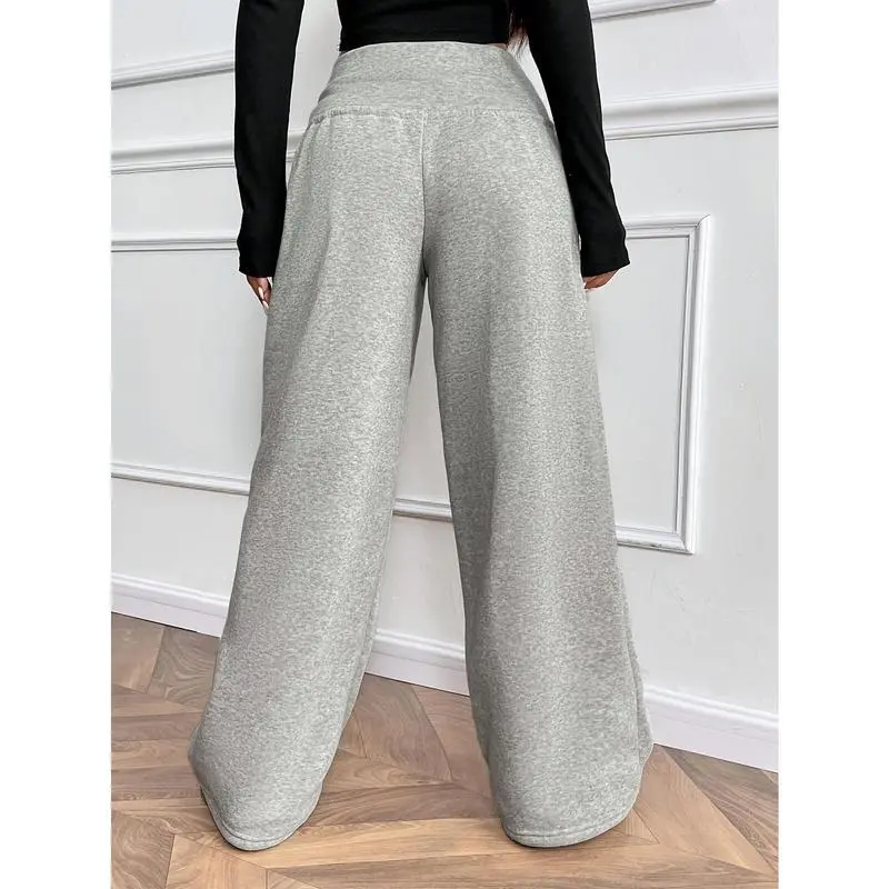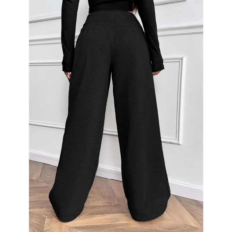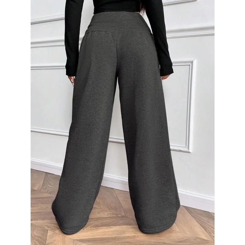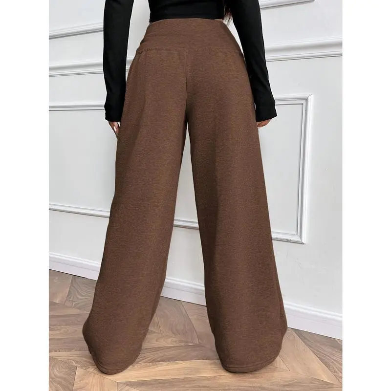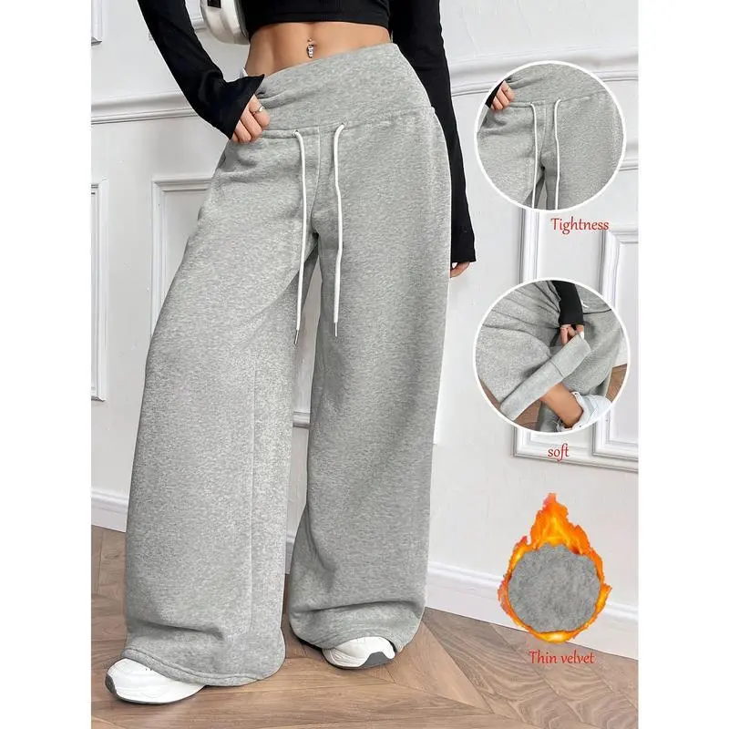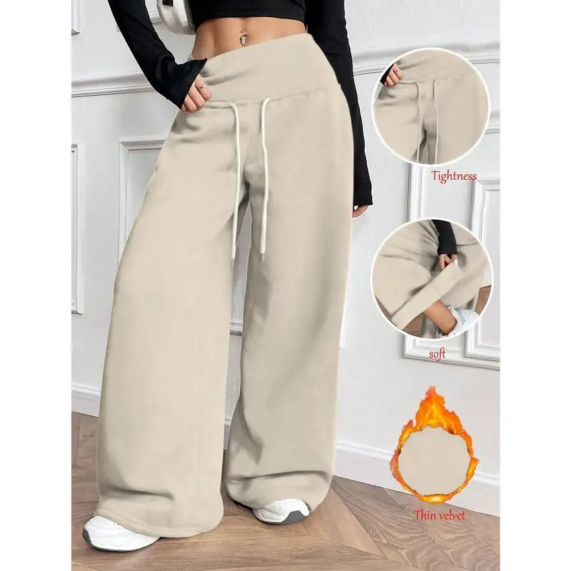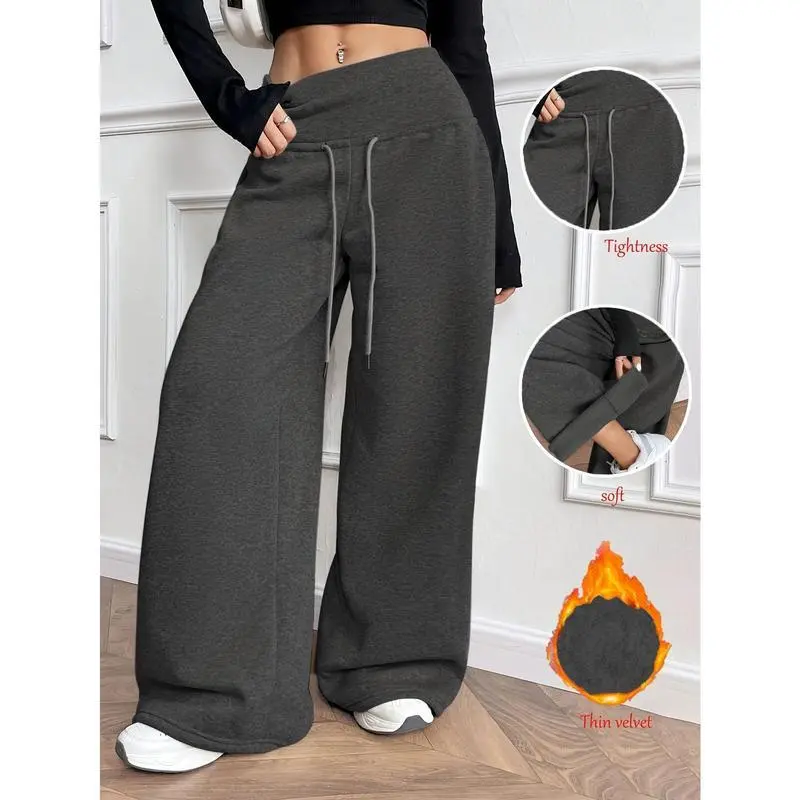 Women's Thermal-Lined Winter Pants - Heavyweight Trousers with Drawstring Waist, Straight Leg Loose Fit for Everyday & Formal Outfits - Machine Washable Cold Weather Pants, Comfy Pants, Casual Wear, Solid Color Design, Soft Texture Fabric Bottoms Knit