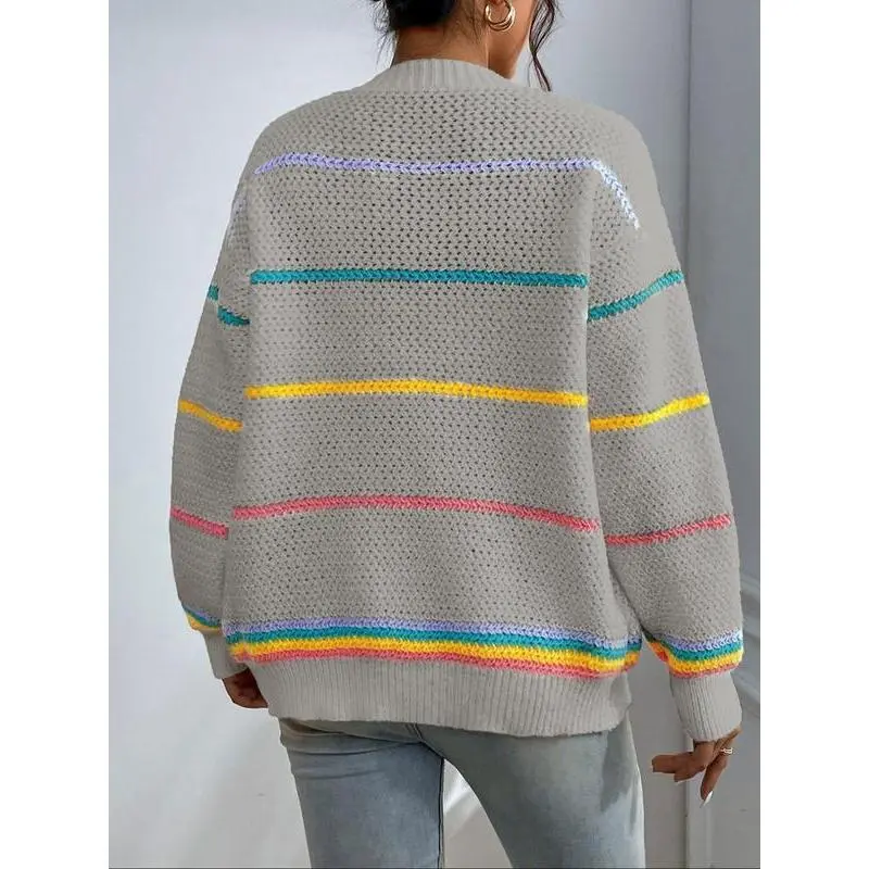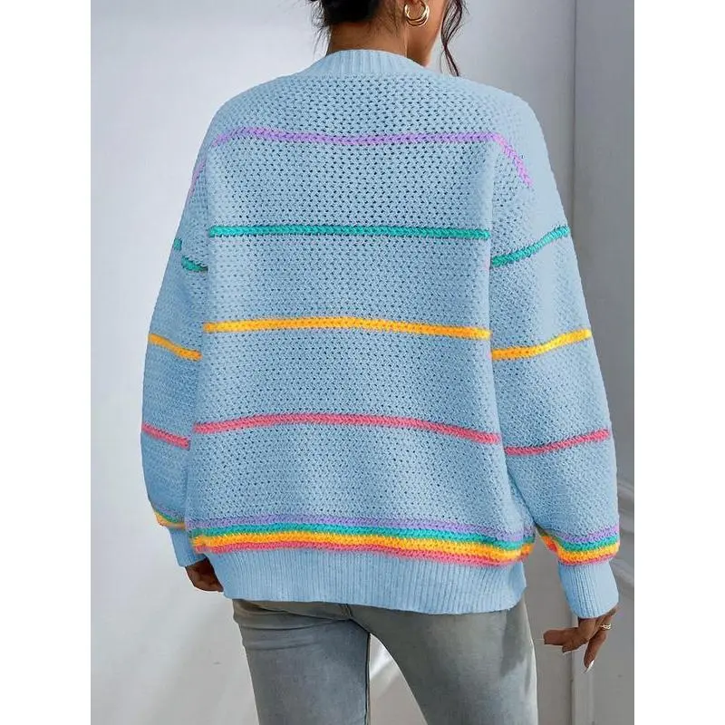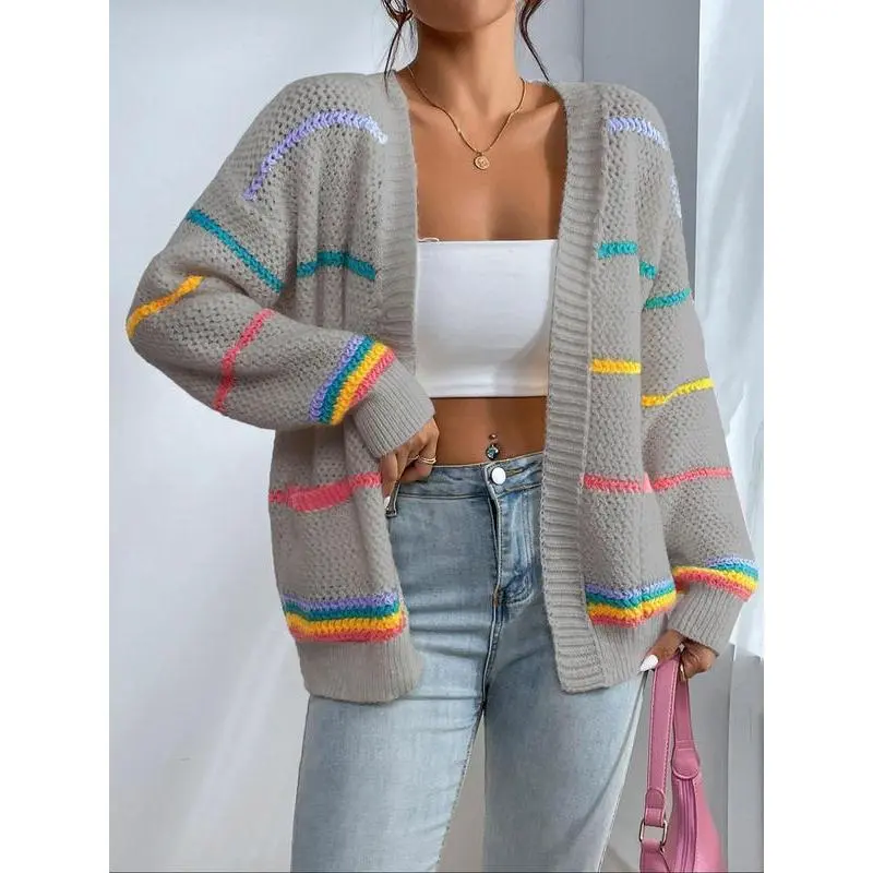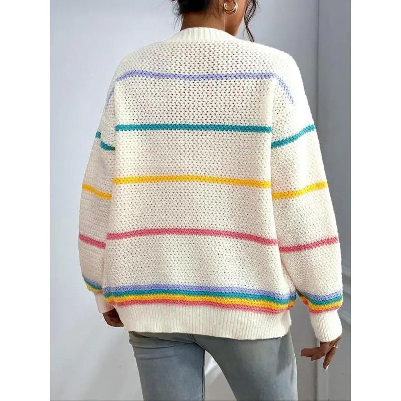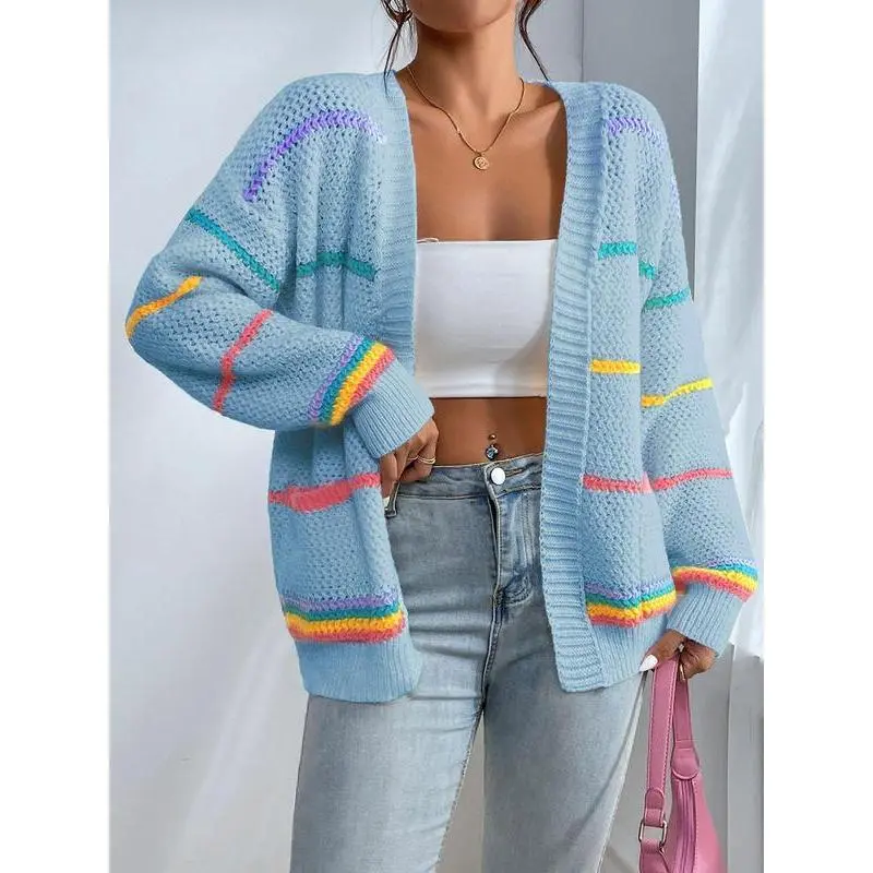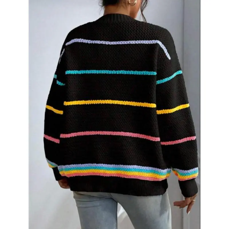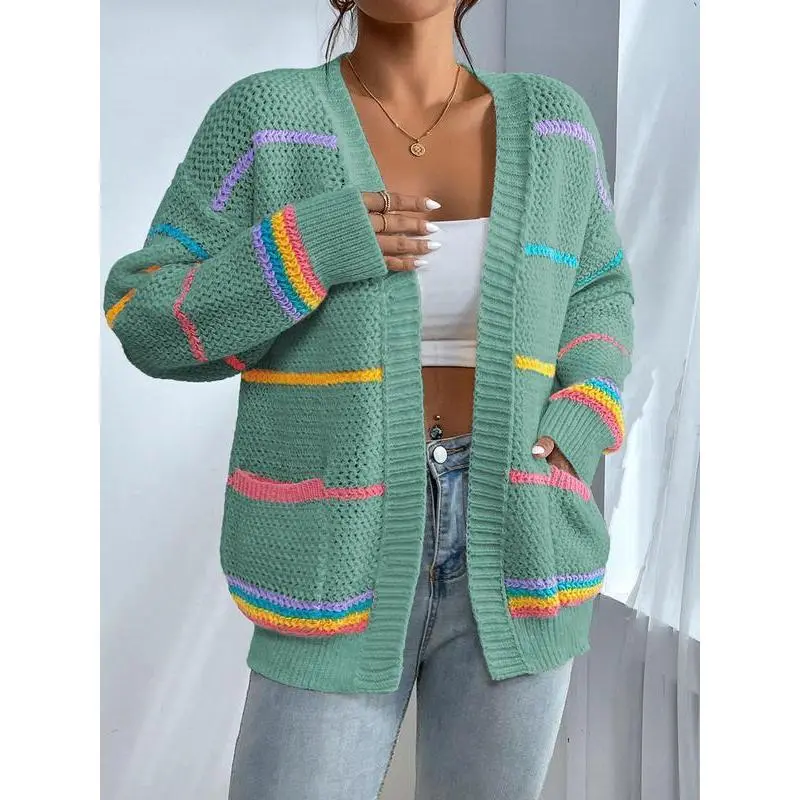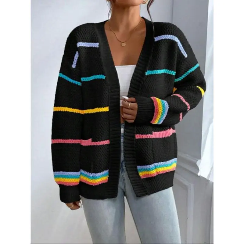Women's Striped Print Open Front?Cardigan, Casual Drop Shoulder?Long Sleeve Pocket Cardigan?for Fall & Winter, Ladies' Knit Clothing for Daily Wear??gift??