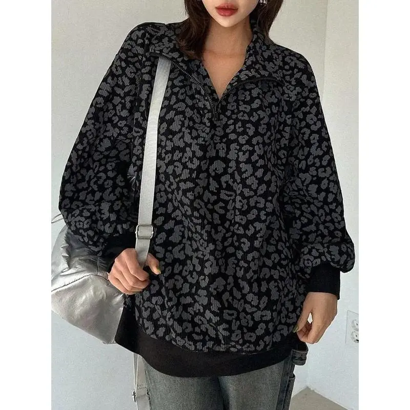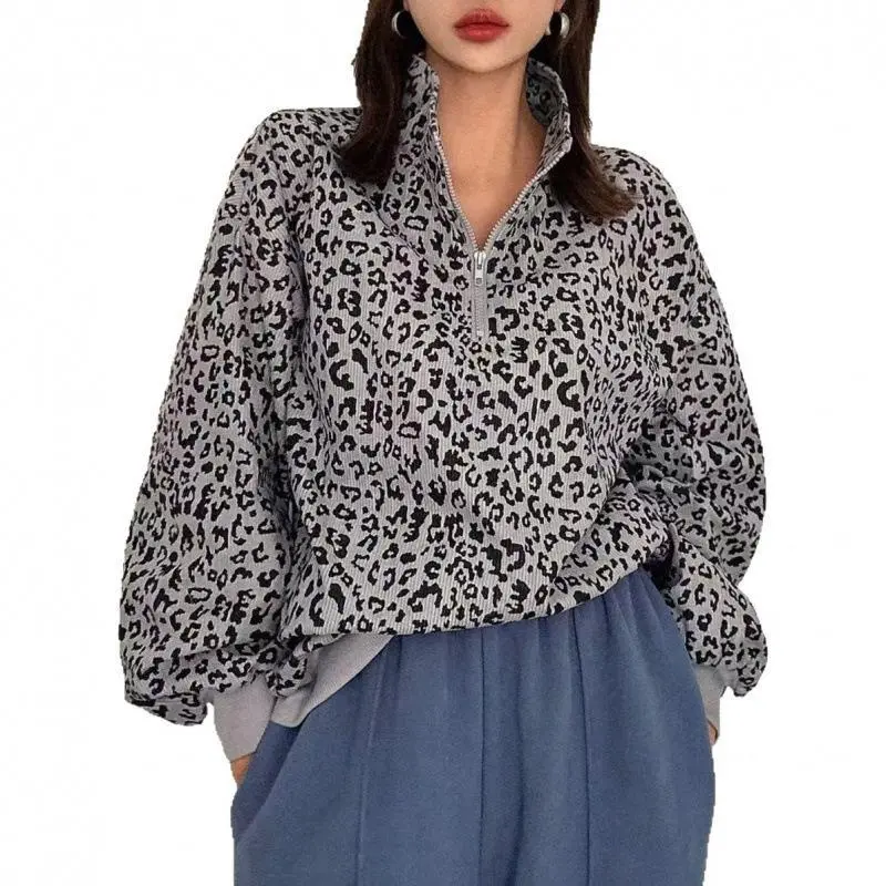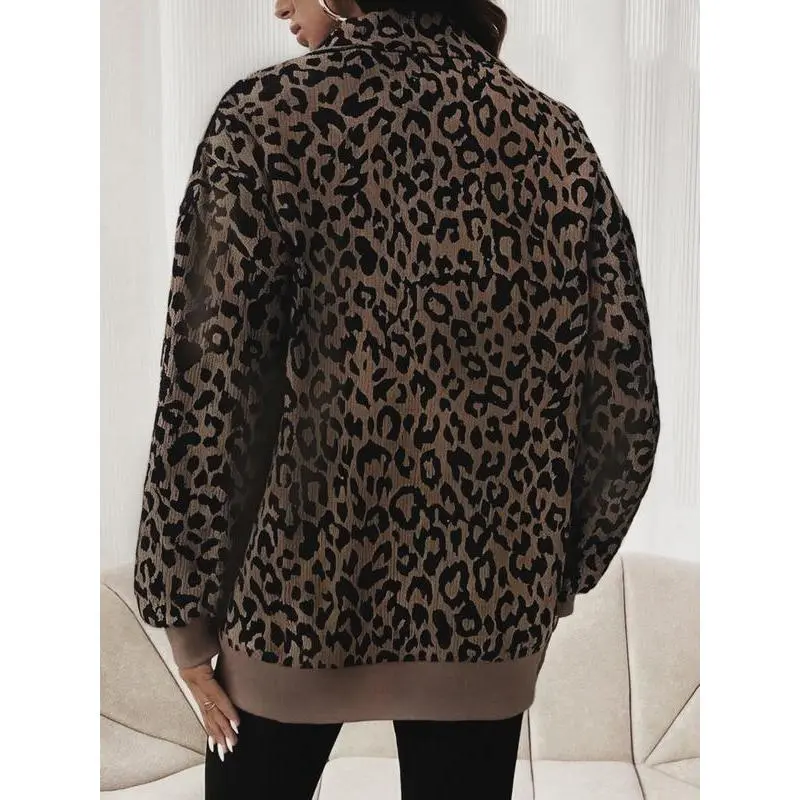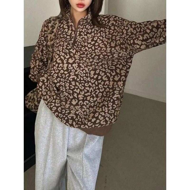 ?? Women's Casual Zip-Up Front Long Sleeve Leopard Print Sweatshirt ?? Stylish & Cozy Design Perfect for Fall Clothes