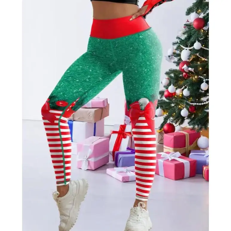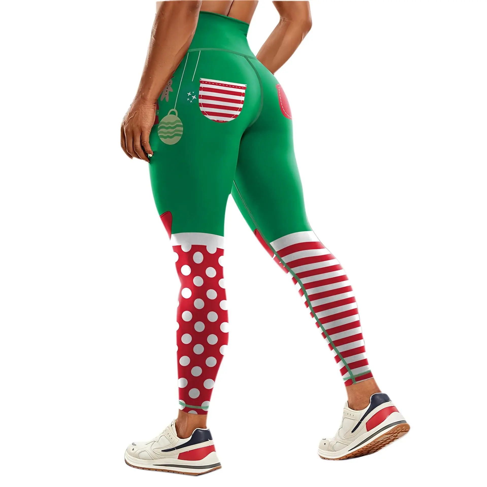 Festive Holiday High-Waisted Christmas Leggings for Women, All-Season Workout Pants with Waistband