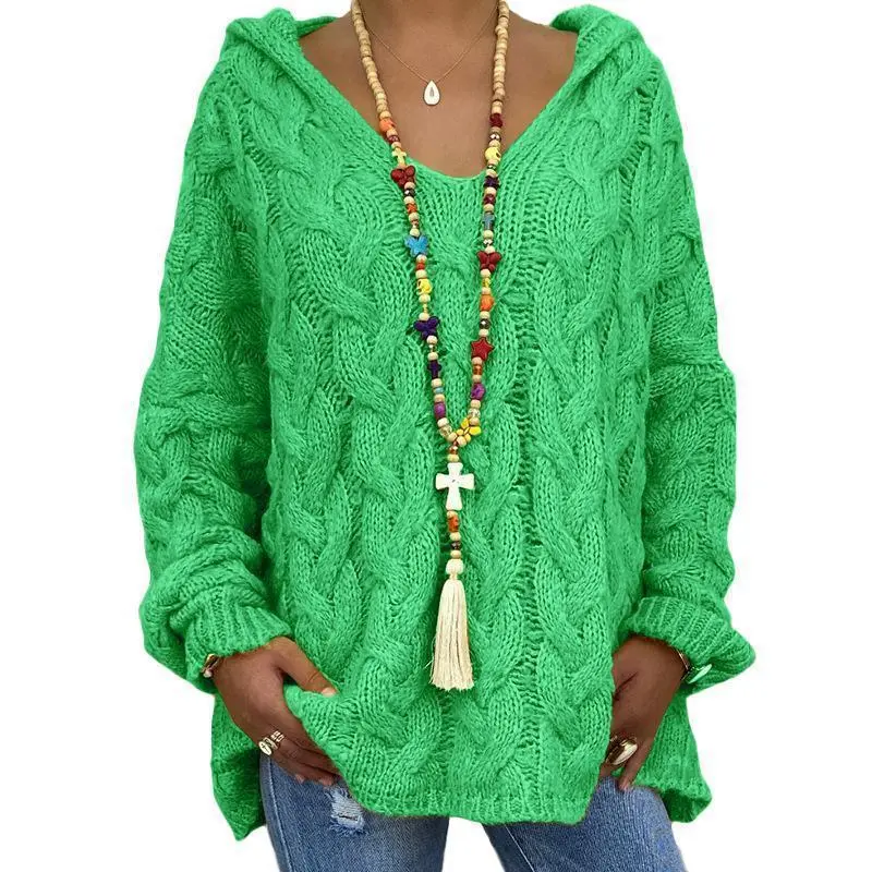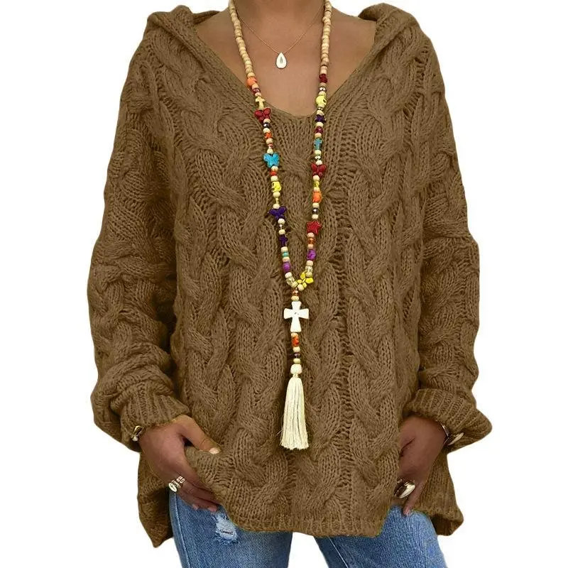 Women's Hooded Cable Knit Sweater Casual Oversized Pullover for Fall Winter Daily Streetwear