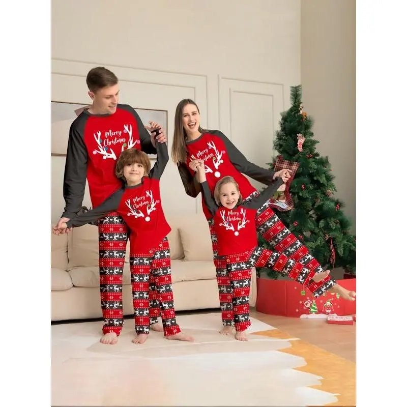 Merry Christmas Family Pajama Set, Fitted Casual Sleepwear, Full-Print Holiday Design, Comfortable Home & Outdoors Wear