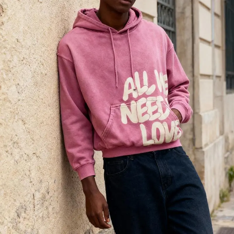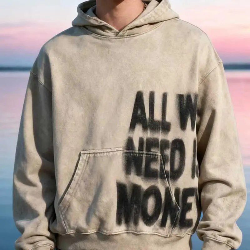 ??Design??: Features bold "All We Need Is Love/Money" graffiti-style prints in pink/beige, with a classic hood and kangaroo pocket. ??Fit & Fabric??: Oversized cropped fit, made of soft, breathable fabric for all-day comfort. ??Style & Scene??: Edgy streetwear aesthetic, perfect for casual outings, urban looks, and daily styling with jeans/joggers.