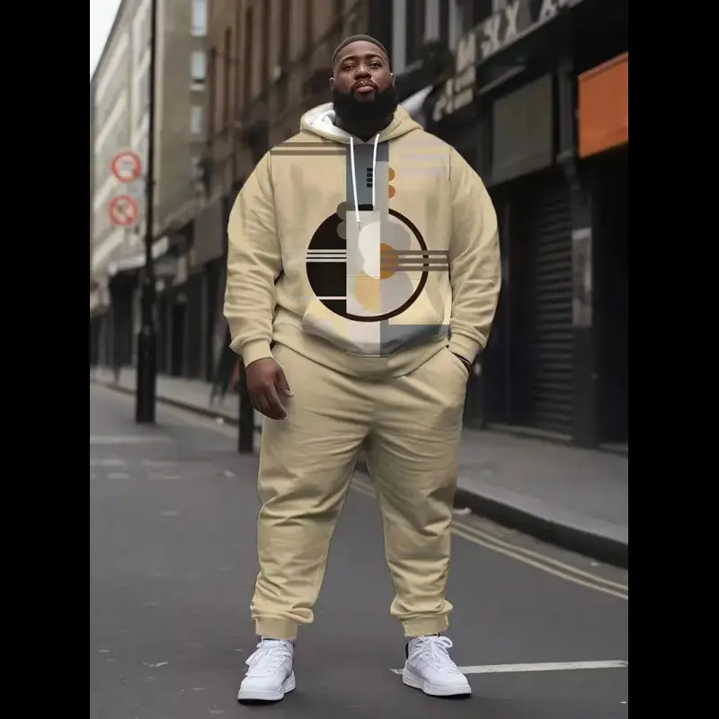 Aost-Effect 2pcs Plus Size Color Block Men's Casual Hoodie Tracksuit ? Product Overview ? This men's casual hoodie tracksuit set includes a hooded sweatshirt and pants. Made from 100% polyester, both the top and bottom offer slight stretch. The set features a patterned print and is machine washable, but not dry cleanable. The hooded collar and regular fit ensure a comfortable wear. Material and Fabric Style and Care