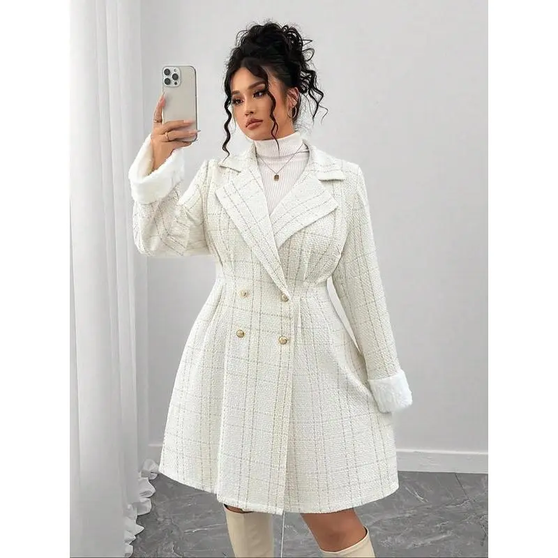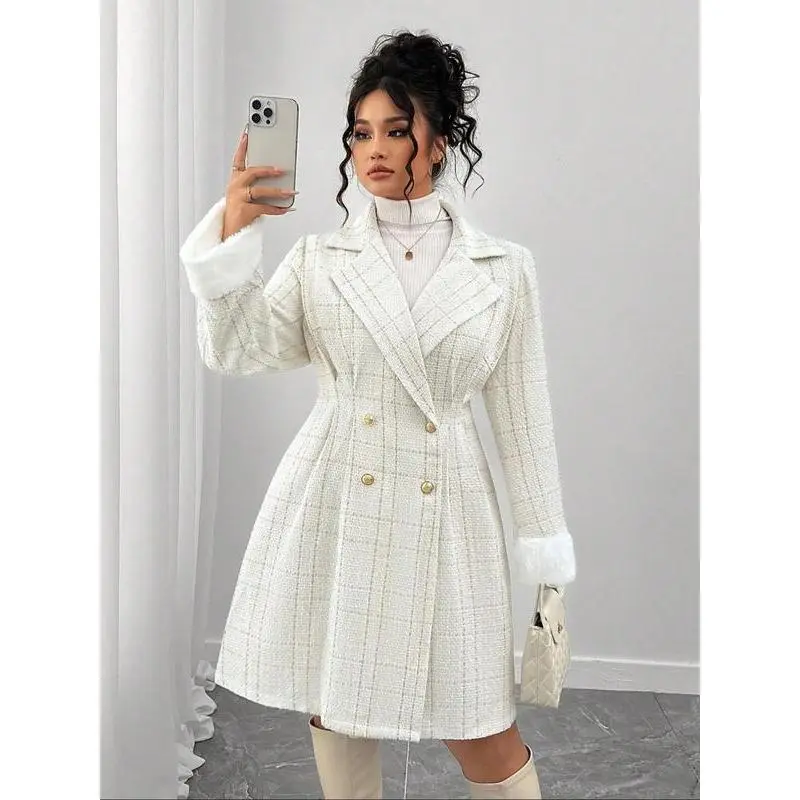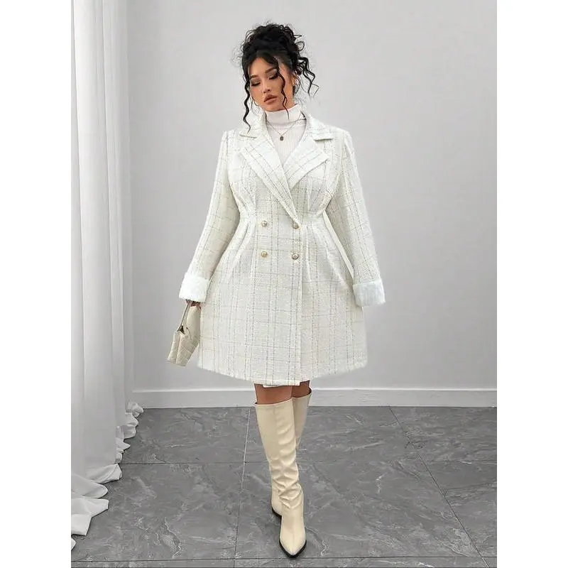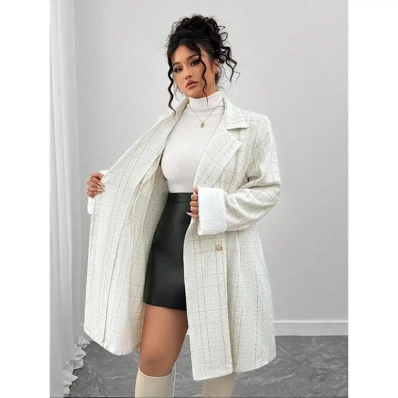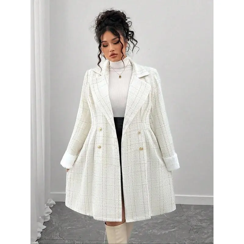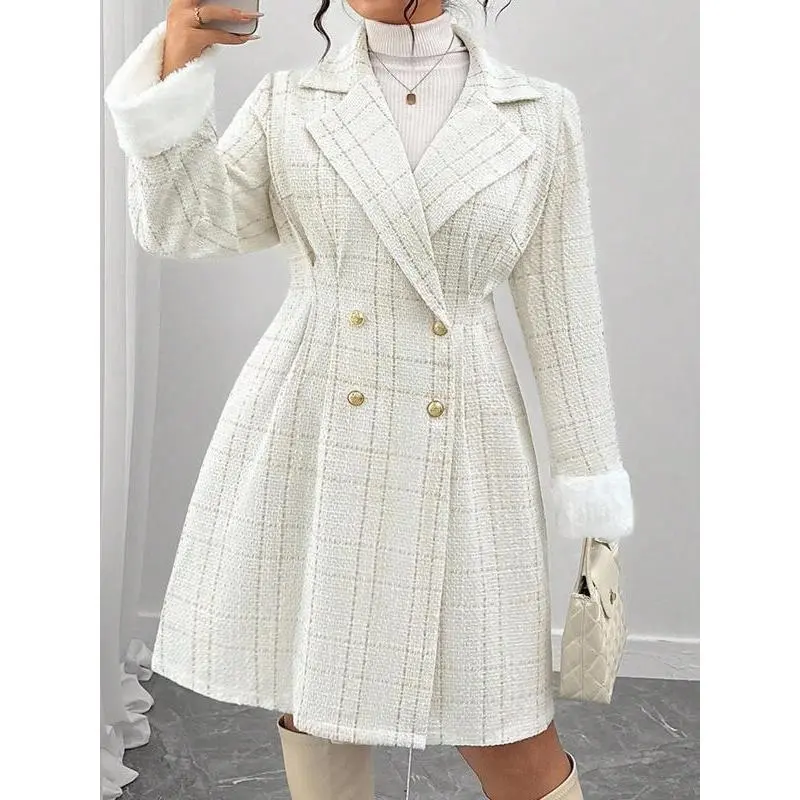 【Double-breasted closure】: Features a sophisticated double-breasted front, adding a touch of classic charm to everyday wear. 【Tailored fit】: The fitted silhouette accentuates the body's shape, creating a refined appearance suitable for various occasions. 【Timeless pattern】: The plain pattern offers versatility, making it easy to pair with different outfits for various events. 【All-season fabric】: Crafted from high-quality fabric, this coat ensures comfort and wearability through all seasons. 【Versatile appeal】: Suitable for daily wear, this coat seamlessly transitions from professional settings to social outings.