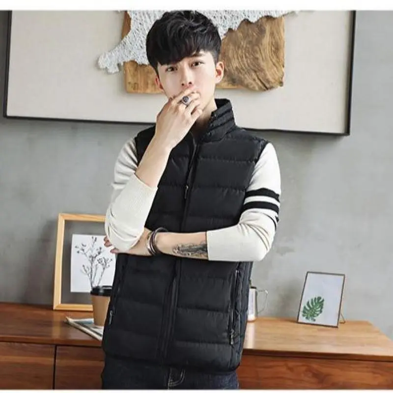 This casual men's vest features a loose-fit design with a classic O-neck collar and regular length. Made from durable polyester with matching polyester lining, the vest offers practical functionality with convenient pockets and a secure zipper closure. The solid-color knit construction creates a versatile autumn piece perfect for shopping and casual occasions. This sleeveless outerwear combines comfort and style with its simple, non-hooded design, making it an excellent addition to any casual wardrobe.