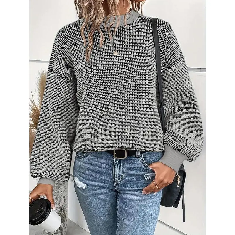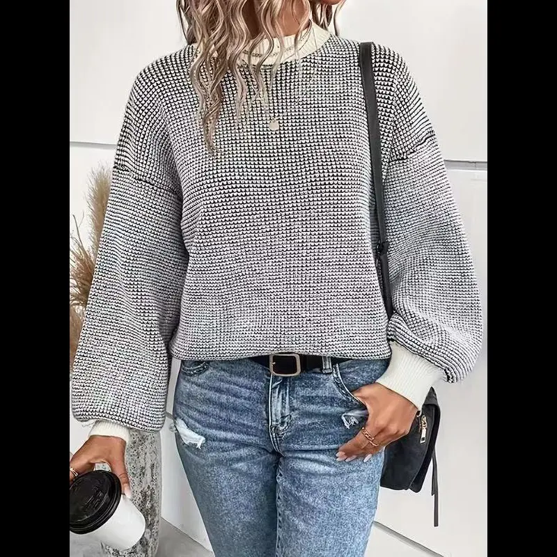 [Colorblock Feature]: The unique colorblock pattern makes this sweater a distinctive piece, setting it apart from traditional knitwear options. [Drop Shoulder Sleeves]: The drop shoulder sleeve style adds a modern touch, enhancing the overall silhouette and allowing for greater mobility and comfort. [High Stretch Material]: Crafted from high-stretch crochet, this sweater offers flexibility and retains its shape, making it ideal for daily wear. [Long Sleeve Warmth]: Long sleeves provide ample coverage and warmth during fall and winter, ensuring you stay cozy without sacrificing style.