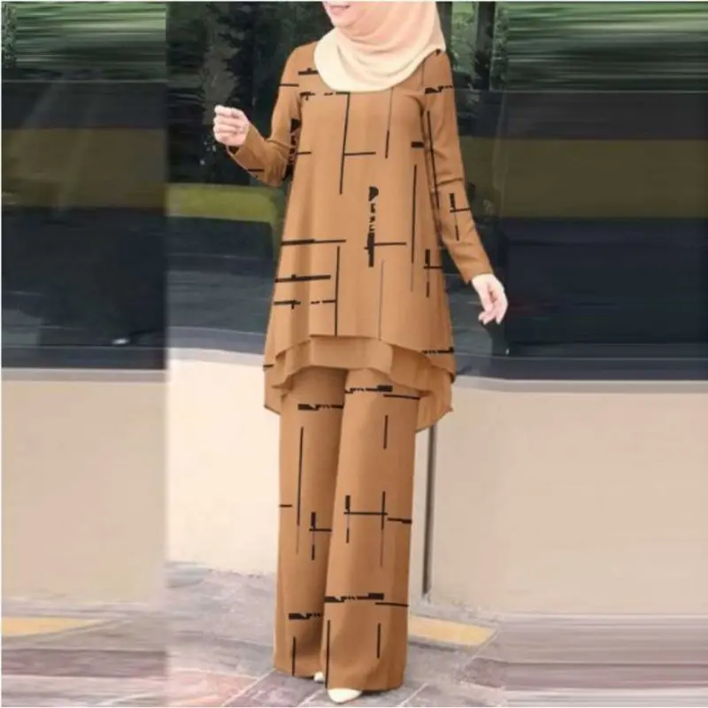 Vintage Stylish Muslim Suit 2PCS Long Sleeve Blouse Pant Sets Islamic Clothing Female Casual Floral Printed Matching Sets