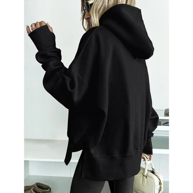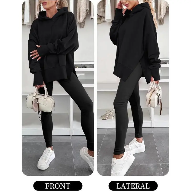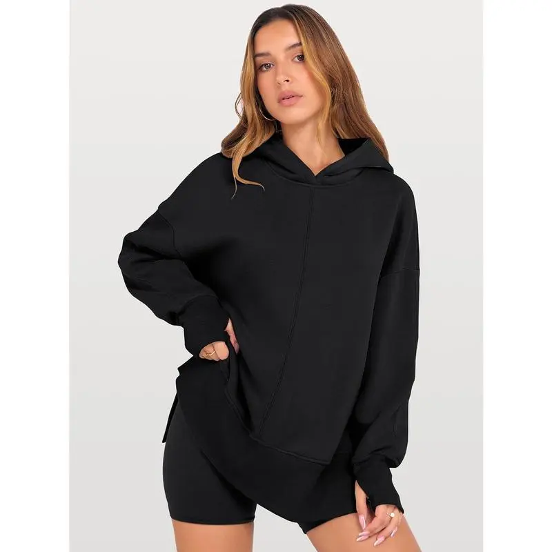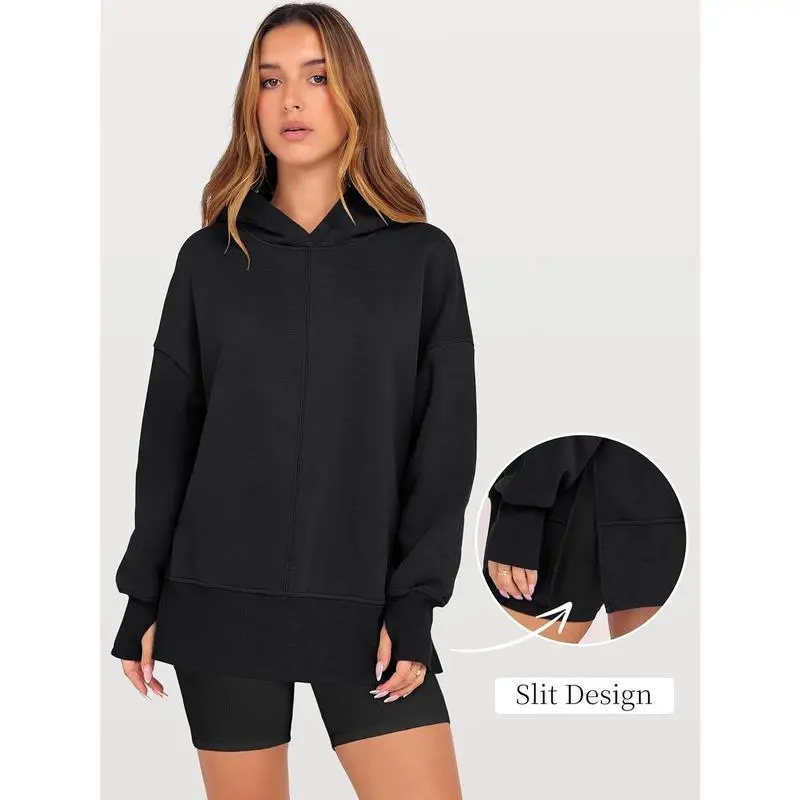 Womens Oversized Hoodies Long Sleeve Fleece Side Slit Hooded Sweatshirts Pullover 2025 Fall Outfits Clothes