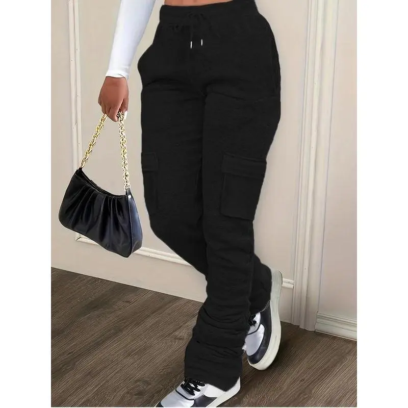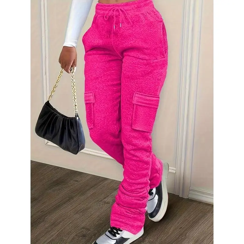 Women's Solid Drawstring Elastic Waist Extra-long Sweatpants, Casual Relaxed Comfortable Flap Pocket Sweat Pants for Fall, Cargo Sweats for Women Lady, Pants for Women,?Women's Trousers Clothes for Daily Wear, Pants for Women??gift??