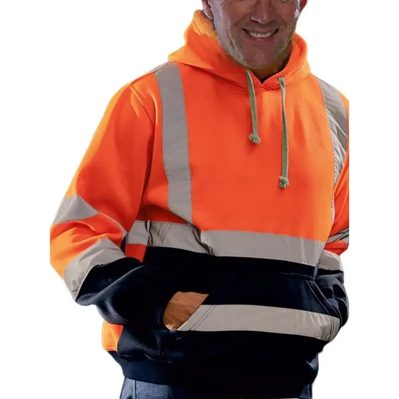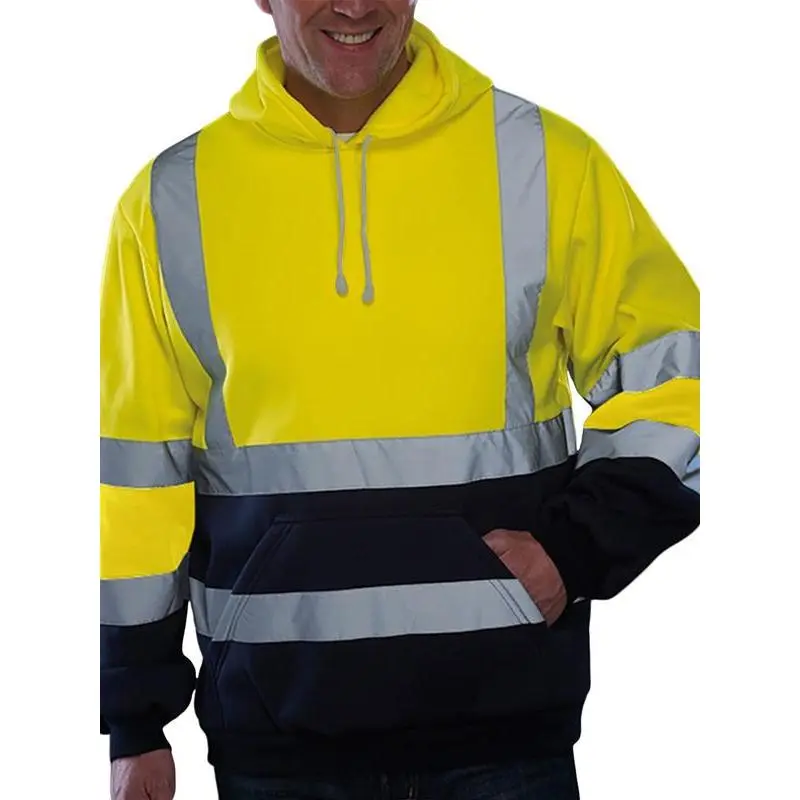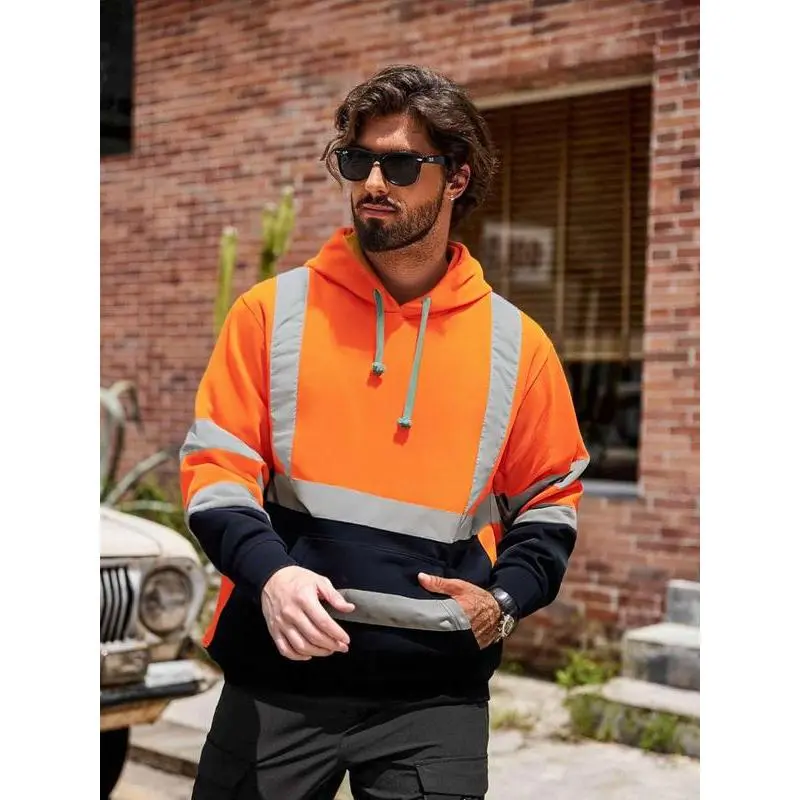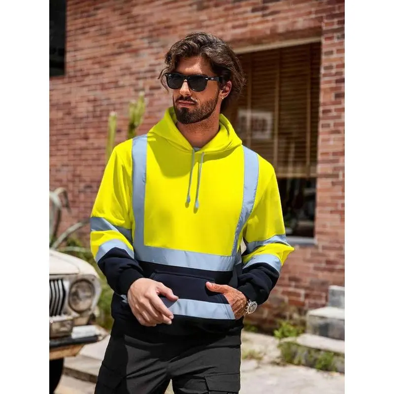 【High Visibility】: Equipped with reflective segments, this hoodie ensures high visibility in low-light conditions for enhanced safety. 【Functional Hoodie】: Featuring a hood for added protection against the elements, this piece is practical for outdoor environments. 【Warm Material】: Made from warm materials, the hoodie offers essential insulation during chilly spring and fall days. 【H Type Silhouette】: Designed with an H type silhouette, this hoodie allows for ease of movement without compromising fit. 【Long Sleeve Feature】: The long sleeves provide additional coverage and warmth, suitable for various outdoor working conditions.