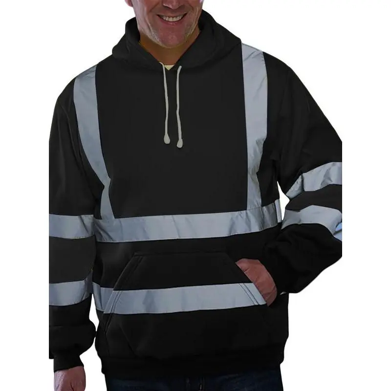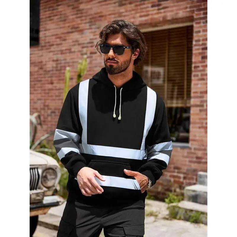 Reflective Hooded Sweatshirt Men Fall Winter Fleece, Safety Workwear Style, High Visibility Reflective, Warm and Comfortable, for Construction Workers and Traffic Officers Christmas and New Year Gifts