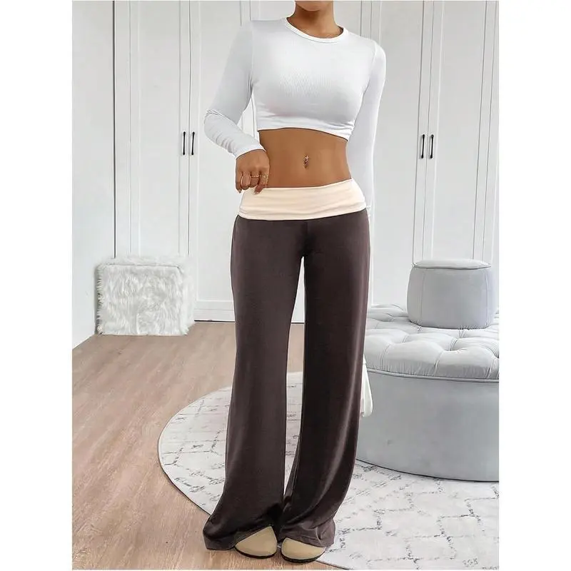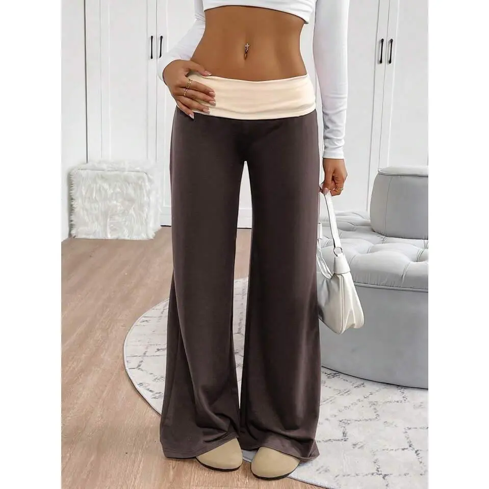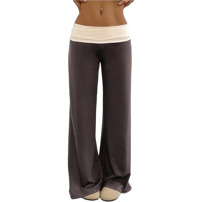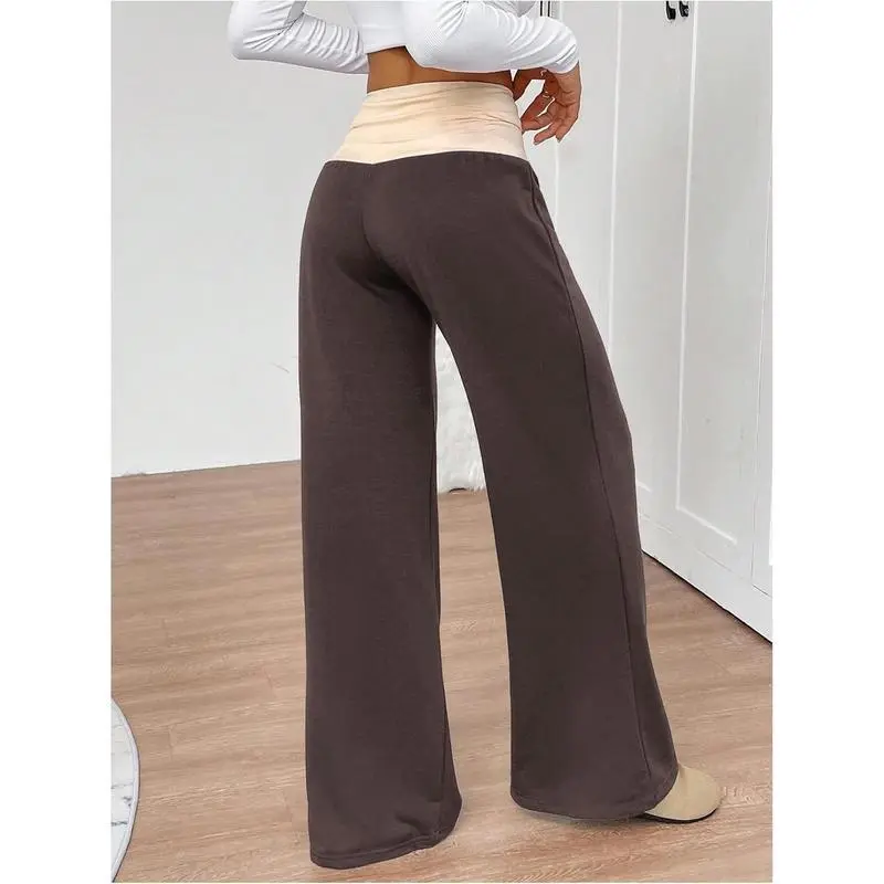 Women's Sweatpants - Color Block Low Rise Fold Over Waist Baggy Wide Leg Lounge Pants for Women, Casual Comfort Yoga Pants, Trendy Streetwear