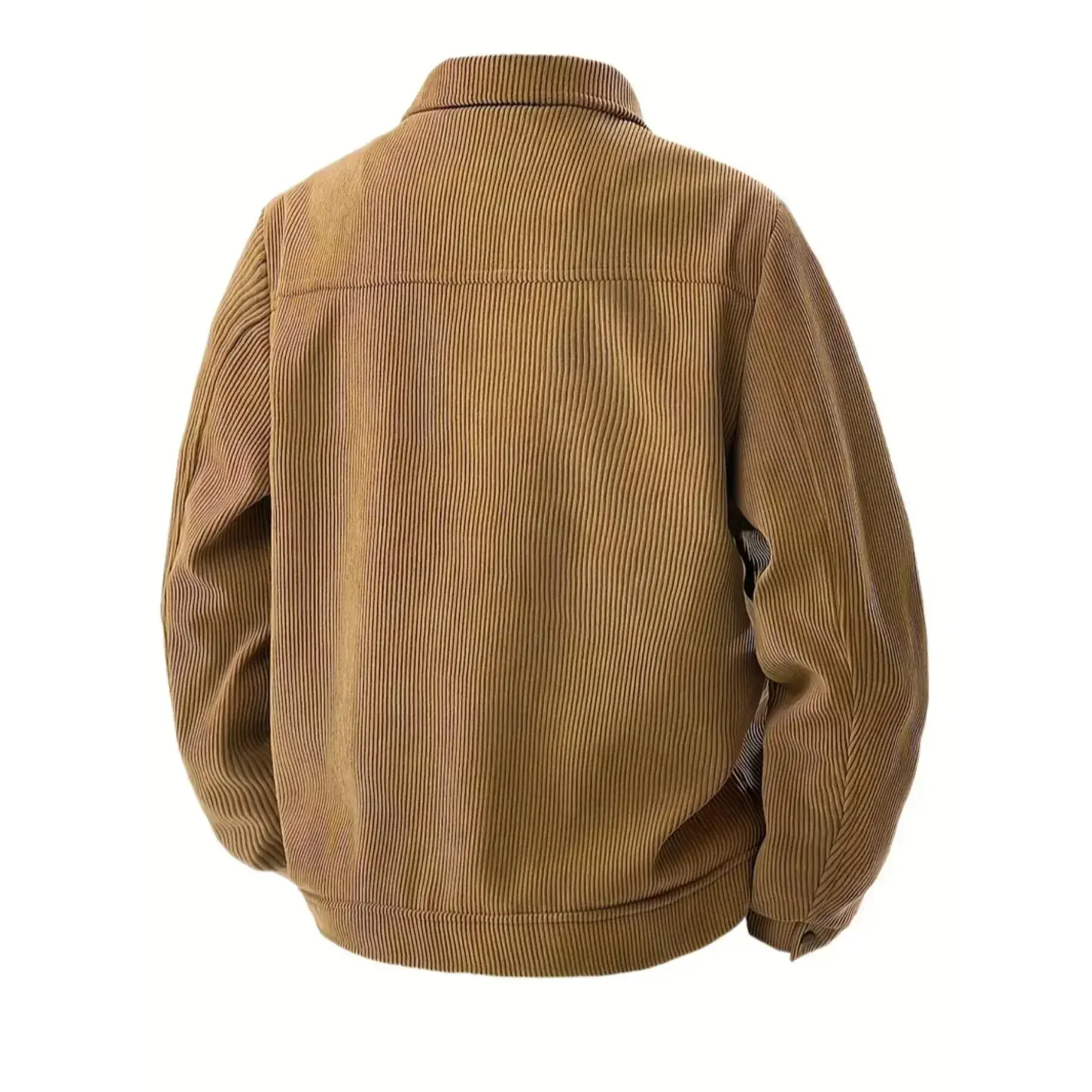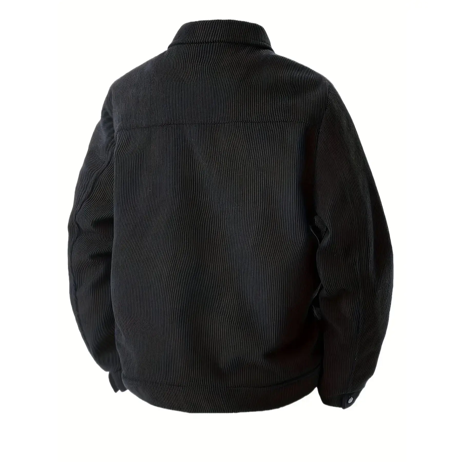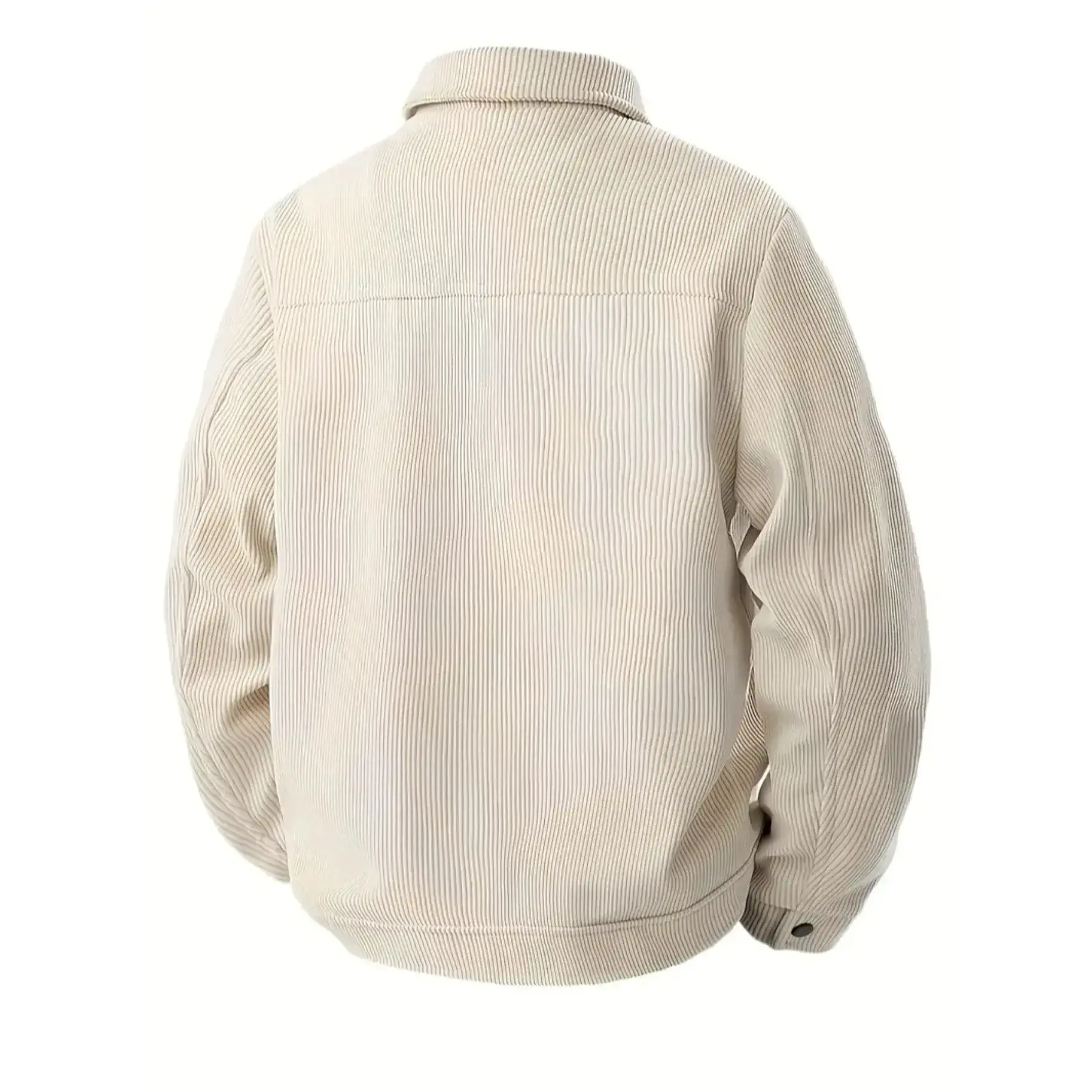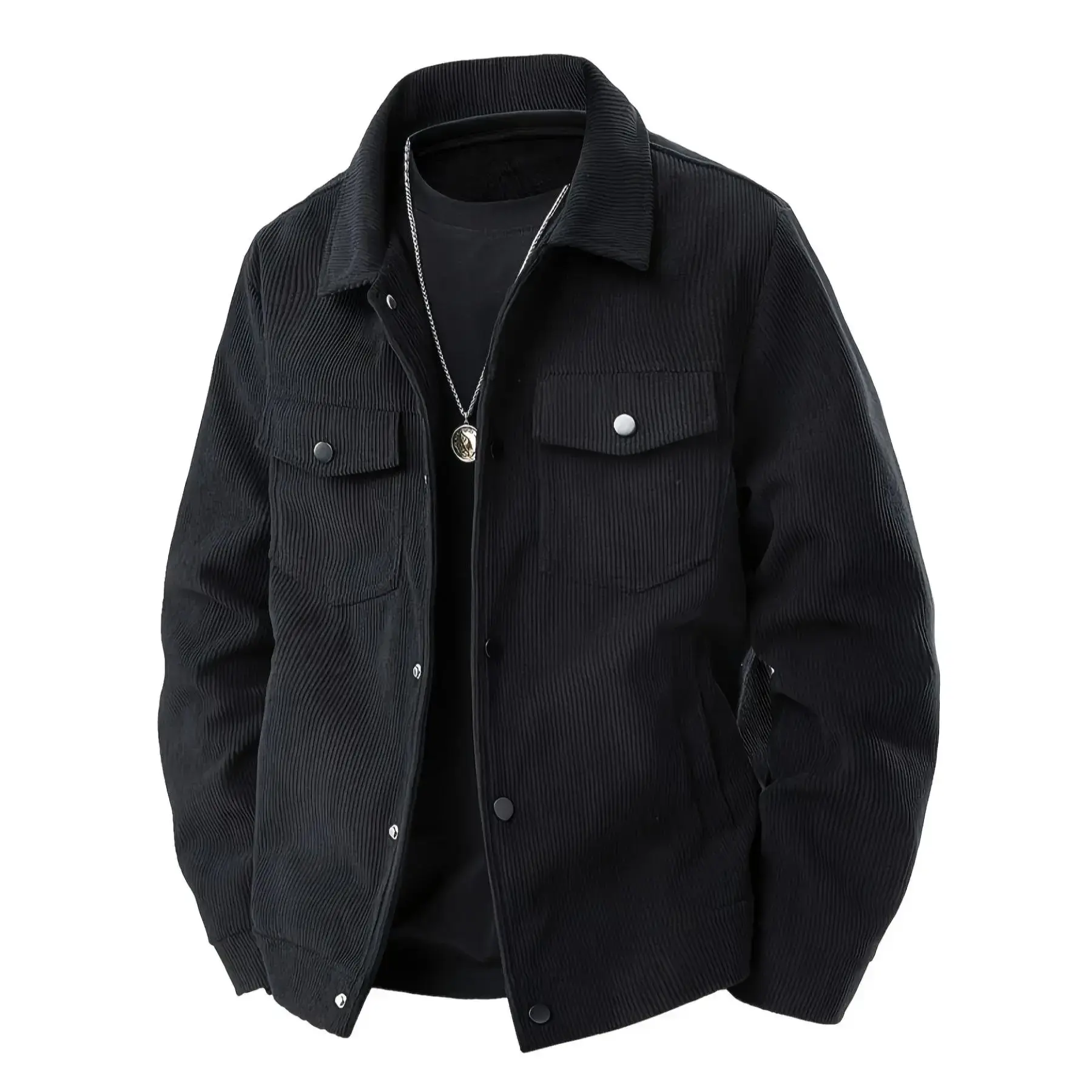 Men's Corduroy Work Jacket with Multi-Pocket Flap Design, Casual Long Sleeve Button Collar, Polyester Material Workwear Jackets