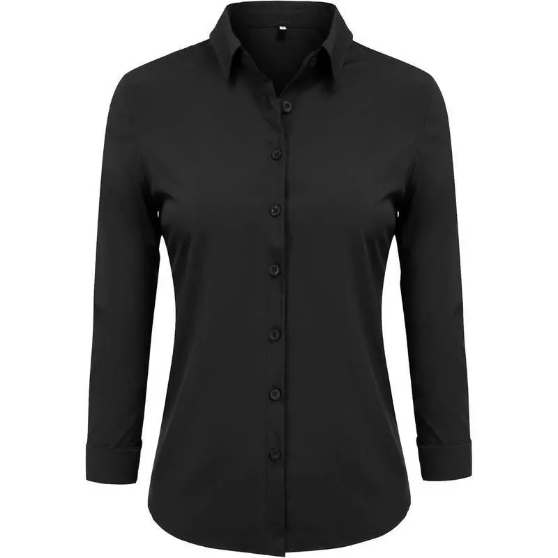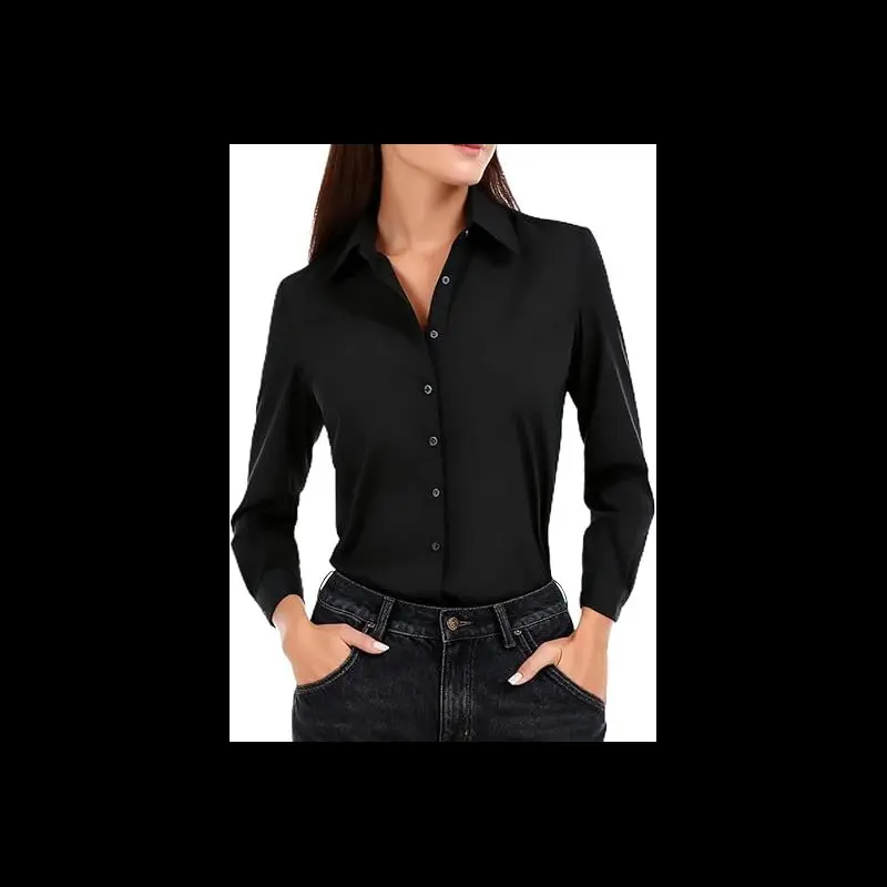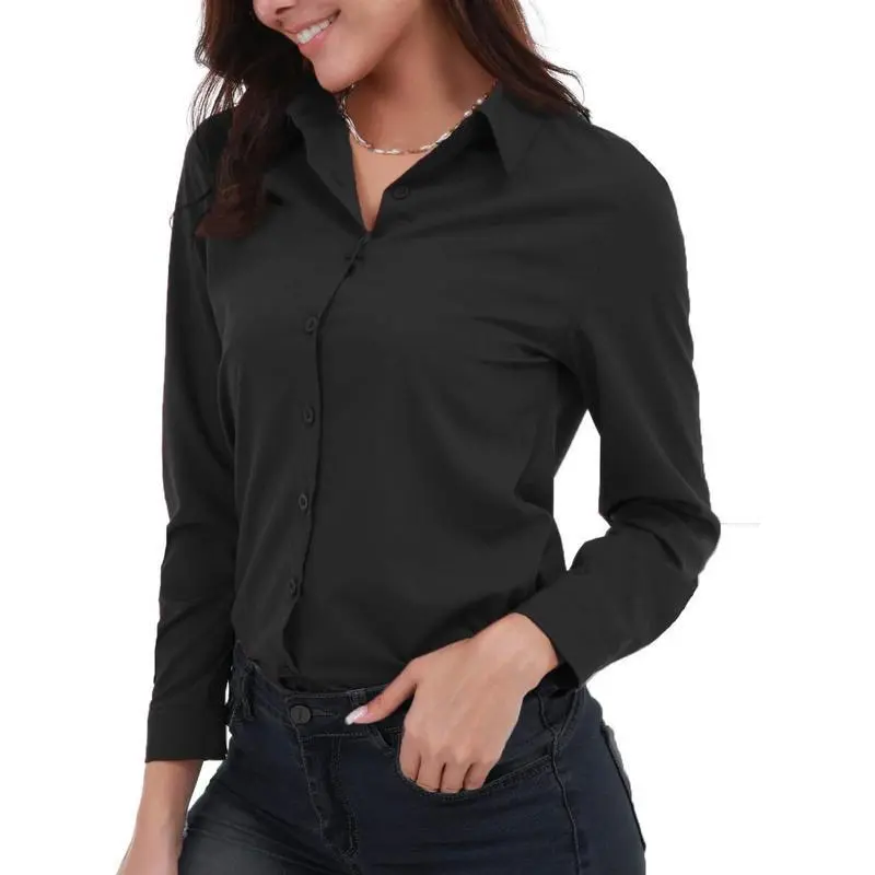 Women's Basic Button Down Shirts Long Sleeve Plus Size Simple Stretch Formal Casual Shirt Blouse